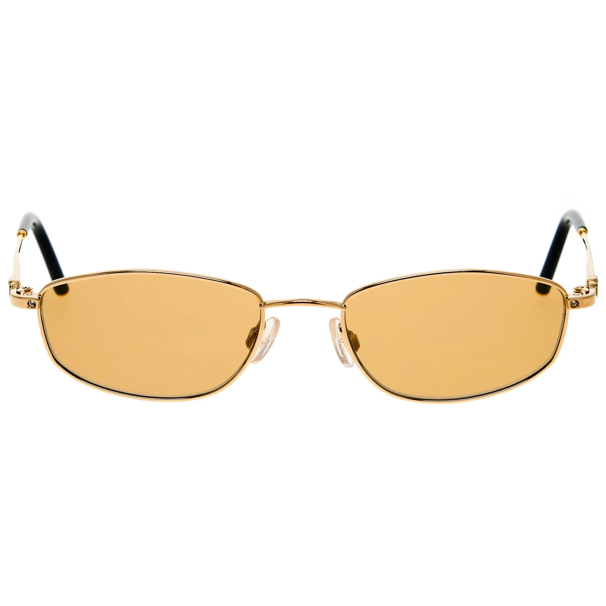 The Faberge C088/20 6052 (Amber) vintage sunglasses, with its gold frame and iconic rectangular silhouette, is a rare vintage sunglasses find for collectors. A name once whispered in royal courts, Faberge continues to enchant with its finely crafted vintage eyewear. The 1990s and 2000s brought an era of lavish experimentation for the brand, producing sunglasses that fused high fashion with historical elegance. From gold-plated arms to cabochon-style accents, each frame carries the ornate precision that defines Faberge’s aesthetic. These pieces are now prized for their scarcity and symbolic prestige, offering a bold yet timeless look that transcends fleeting trends. Explore vintage Faberge sunglasses now at Vintage Frames Company.