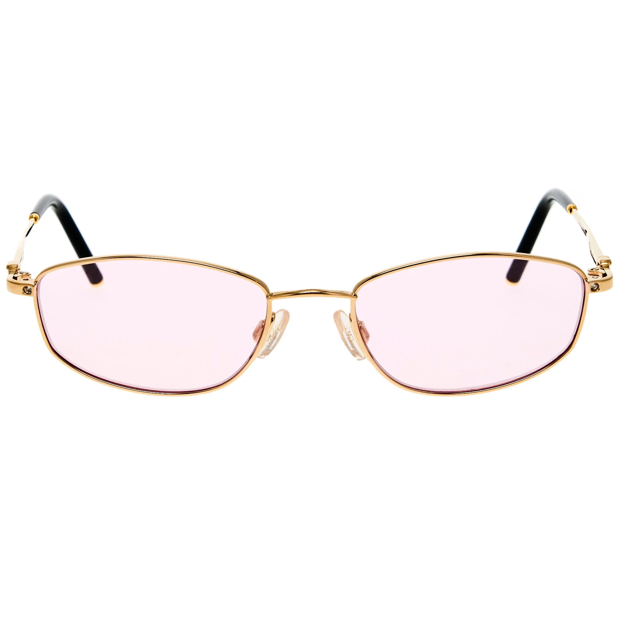 The Faberge C088/20 6052 (Pink) vintage sunglasses, with its gold frame and iconic rectangular silhouette, is a rare vintage sunglasses find for collectors. From crafting treasures for the Russian elite to redefining eyewear elegance, Faberge has always celebrated intricate beauty. Its sunglasses from the 1990s and early 2000s showcase a refined blend of historical grandeur and modern design. Ornate embellishments, architectural temples, and rich gold tones define the collection, echoing the brand’s artistic roots. As collectors seek unique statements from the past, Faberge frames offer both fashion and legacy. Their rarity and artistry make them essential additions to any vintage luxury archive. Shop rare Faberge sunglasses now at Vintage Frames Company.