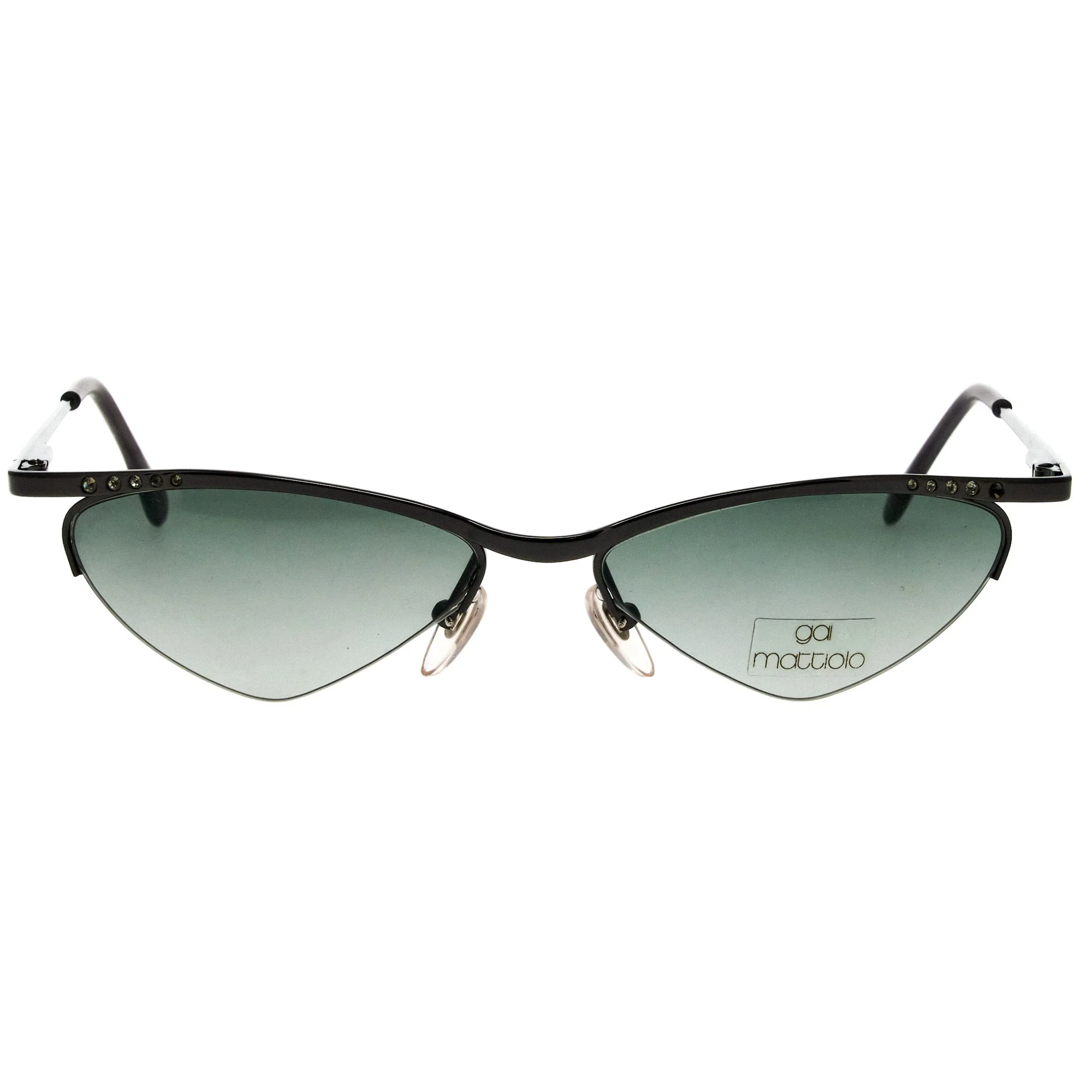 The Gai Mattiolo K71 89M 495 vintage sunglasses, with its silver/gray frame and iconic editorial silhouette, is a rare vintage sunglasses find for collectors. Gai Mattiolo emerged as a standout in Italian fashion with a flair for dramatic elegance and couture craftsmanship. His sunglasses from the 1990s and early 2000s mirror that aesthetic with expressive shapes, sculptural detailing, and luxurious finishes. These frames often incorporate bold colors, ornate temple work, and fashion-forward proportions, capturing the exuberance of the era. Today, vintage Gai Mattiolo eyewear is collected for its theatrical spirit and rare presence. Shop exclusive vintage Gai Mattiolo sunglasses now at Vintage Frames Company.