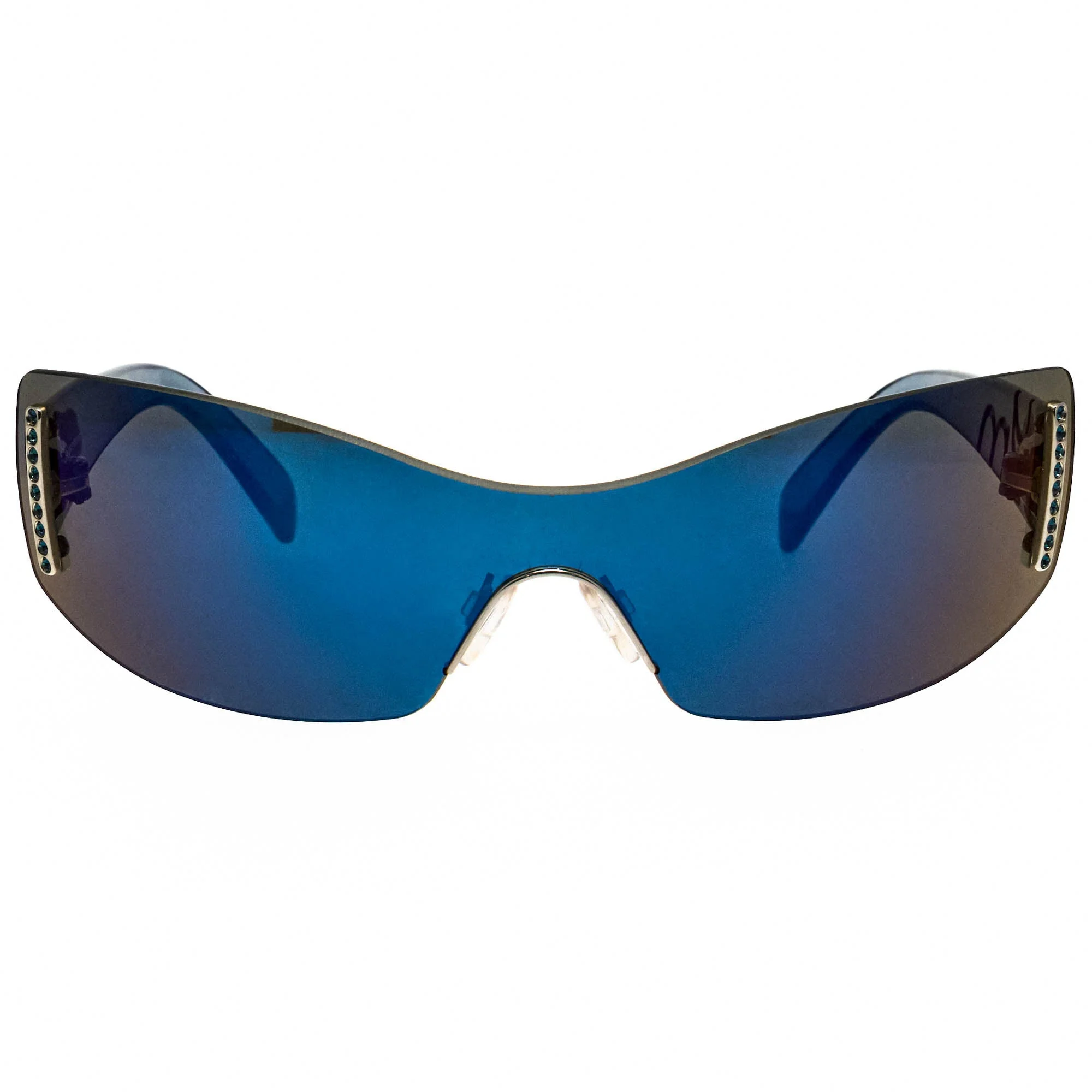 The Gai Mattiolo T63 219 189 vintage sunglasses, with its black transparent frame and iconic shield silhouette, is a rare vintage sunglasses find for collectors. Gai Mattiolo’s vintage eyewear is a reflection of his haute couture roots—flamboyant, impeccably crafted, and unforgettable. From the late 90s into the 2000s, his sunglasses made bold use of metal, color, and architectural form, designed to be noticed and admired. Their scarcity and singular style make them prized among vintage connoisseurs. Explore vintage Gai Mattiolo sunglasses now at Vintage Frames Company.
