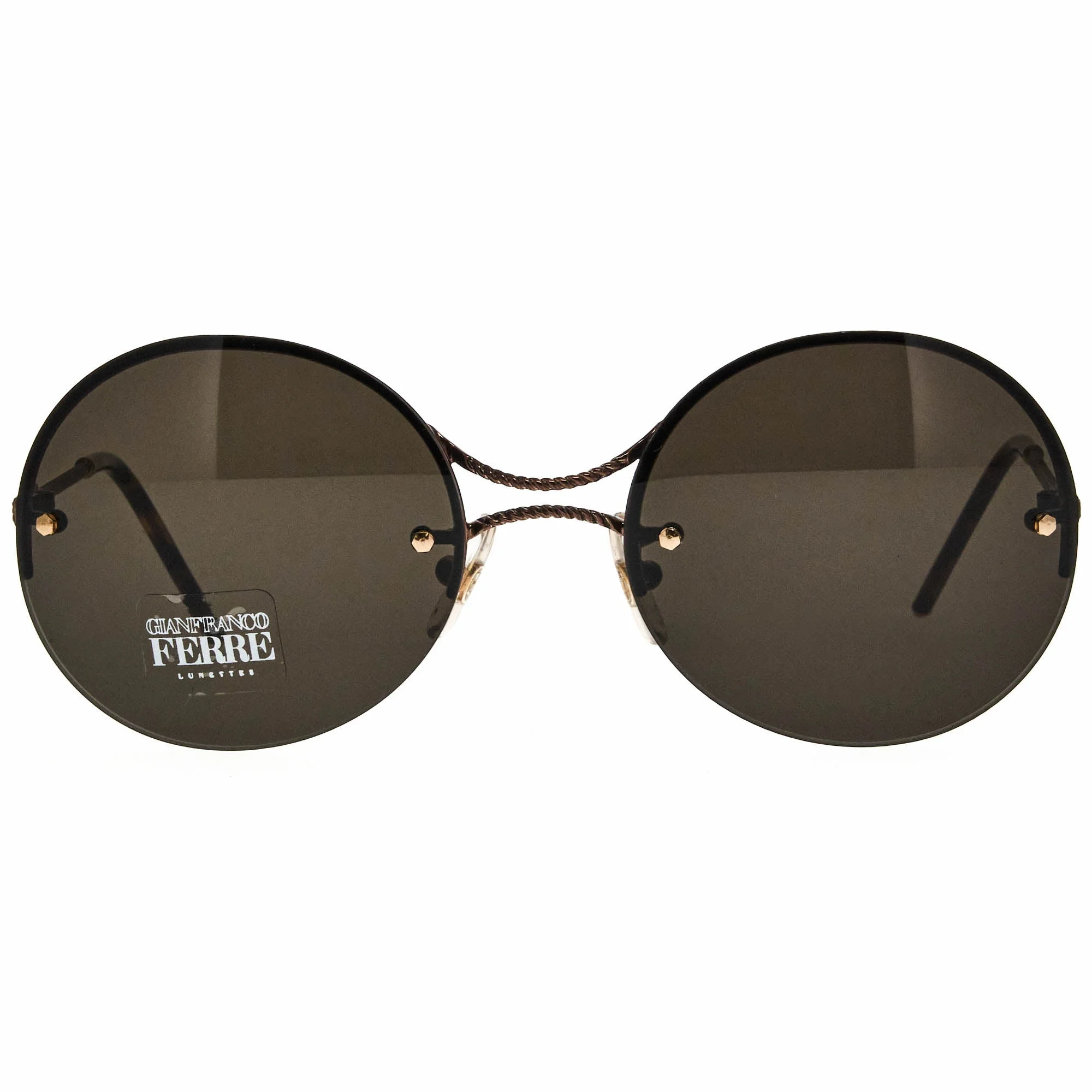 The Gianfranco Ferre GFF 425/S 8NR sunglasses, with its brown frame and iconic round silhouette, is a rare vintage sunglasses find for collectors. The genius of Gianfranco Ferre, rooted in his architectural education, shines through in his 1990s Vintage Sunglasses. Ferre’s frames often featured striking geometric shapes such as rectangles, squares, and cat-eyes, paired with colors like deep maroon, amber, and matte gold. His designs offered a modern take on classic forms, with subtle details like polished metal finishes and contrasting textures. These sunglasses became favorites among intellectuals and trendsetters who appreciated thoughtful design. Collectors prize these Vintage Sunglasses for their structural integrity and elegance. The Vintage Frames Company boasts the most diverse collection of Vintage GFF Sunglasses in the world, celebrating Ferre’s legacy.