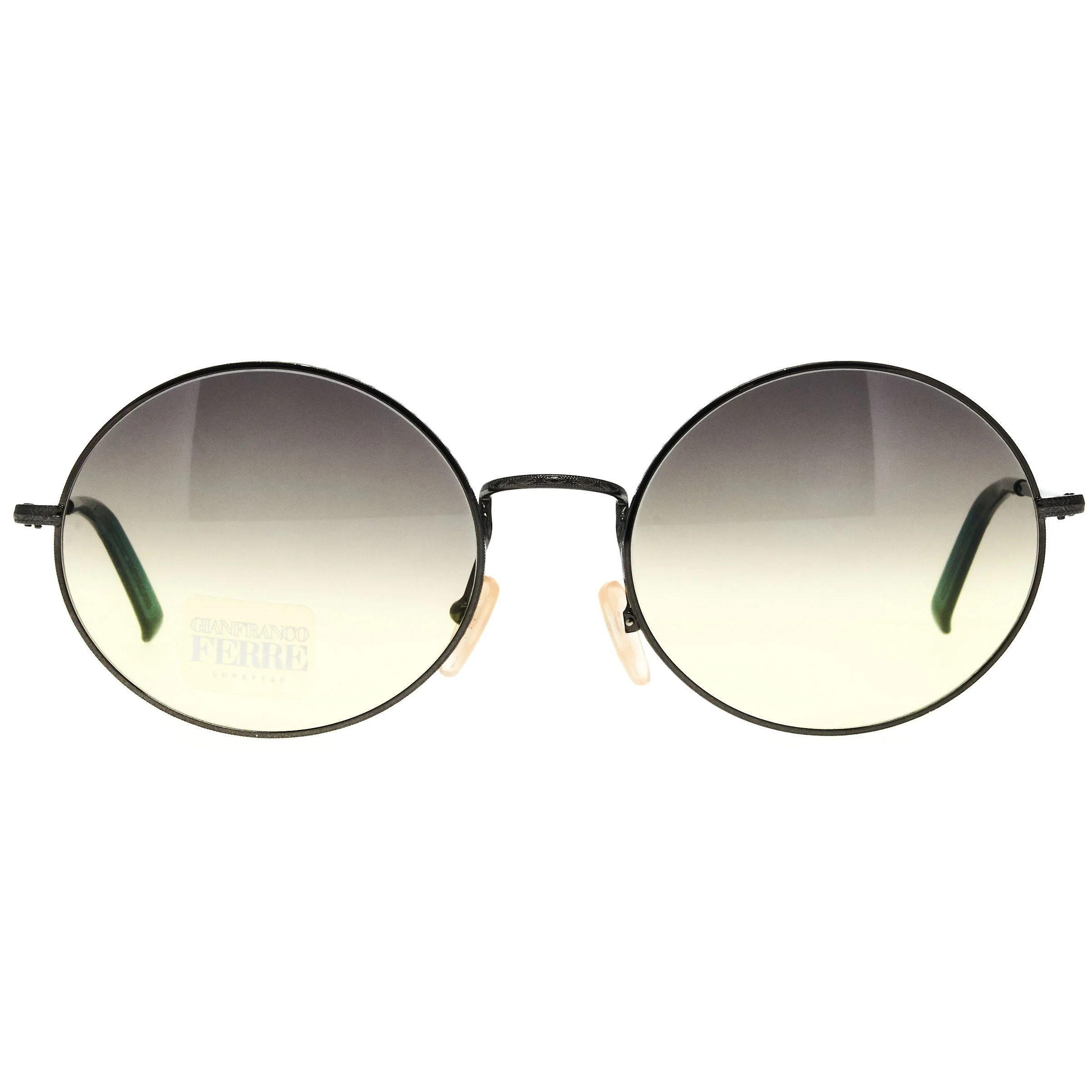 The Gianfranco Ferre GFF 530S 8LN sunglasses, with its black/green frame and iconic round silhouette, is a rare vintage sunglasses find for collectors. Gianfranco Ferre’s architectural training inspired his iconic 1990s Vintage Sunglasses, which combined bold geometric shapes with elegant color palettes. Ferre’s designs featured oversized rectangles, rounded cat-eyes, and sleek ovals, enhanced by shades like deep plum, classic black, and shimmering gold. Subtle metallic accents and textural contrasts gave each frame a refined edge. These sunglasses became symbols of intellectual sophistication and style, worn by professionals and creatives. As collectible pieces, they represent Ferre’s commitment to precision and luxury. The Vintage Frames Company offers the most diverse collection of Vintage GFF Sunglasses in the world, celebrating his visionary designs.