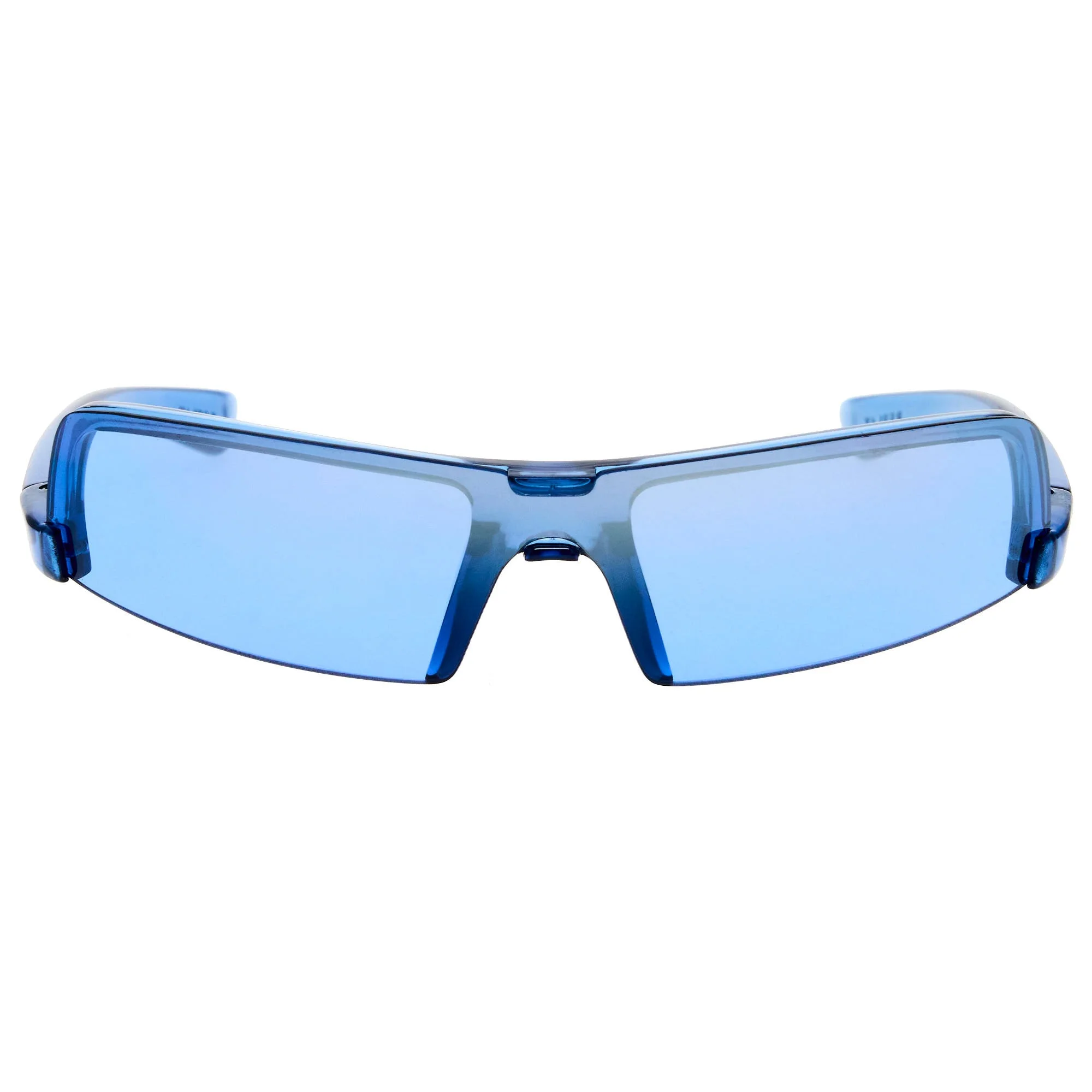 Emerging in the late 1980s, Replay carved out a niche in high-end fashion by blending Italian craftsmanship with an edgy, streetwise aesthetic. Known for its audacious take on vintage sunglasses, the brand became a staple in 90s and early 2000s eyewear trends, pushing the boundaries of bold, oversized frames with intricate metal accents and colored lenses. Replay’s designs weren’t just eyewear—they were cultural statements, worn by tastemakers who wanted to stand out. Its founder, Claudio Buziol, was a visionary in fashion, bringing his love for retro revival into a new era of eyewear. His ability to reimagine vintage aesthetics with a contemporary twist set Replay apart, making these vintage sunglasses some of the most sought-after collector’s pieces today. Vintage Frames Company has the largest stock of designer vintage sunglasses in the world. The Replay R549S 599 129 115 vintage sunglasses, with its blue frame and iconic half rim silhouette, is a rare vintage sunglasses find for collectors.