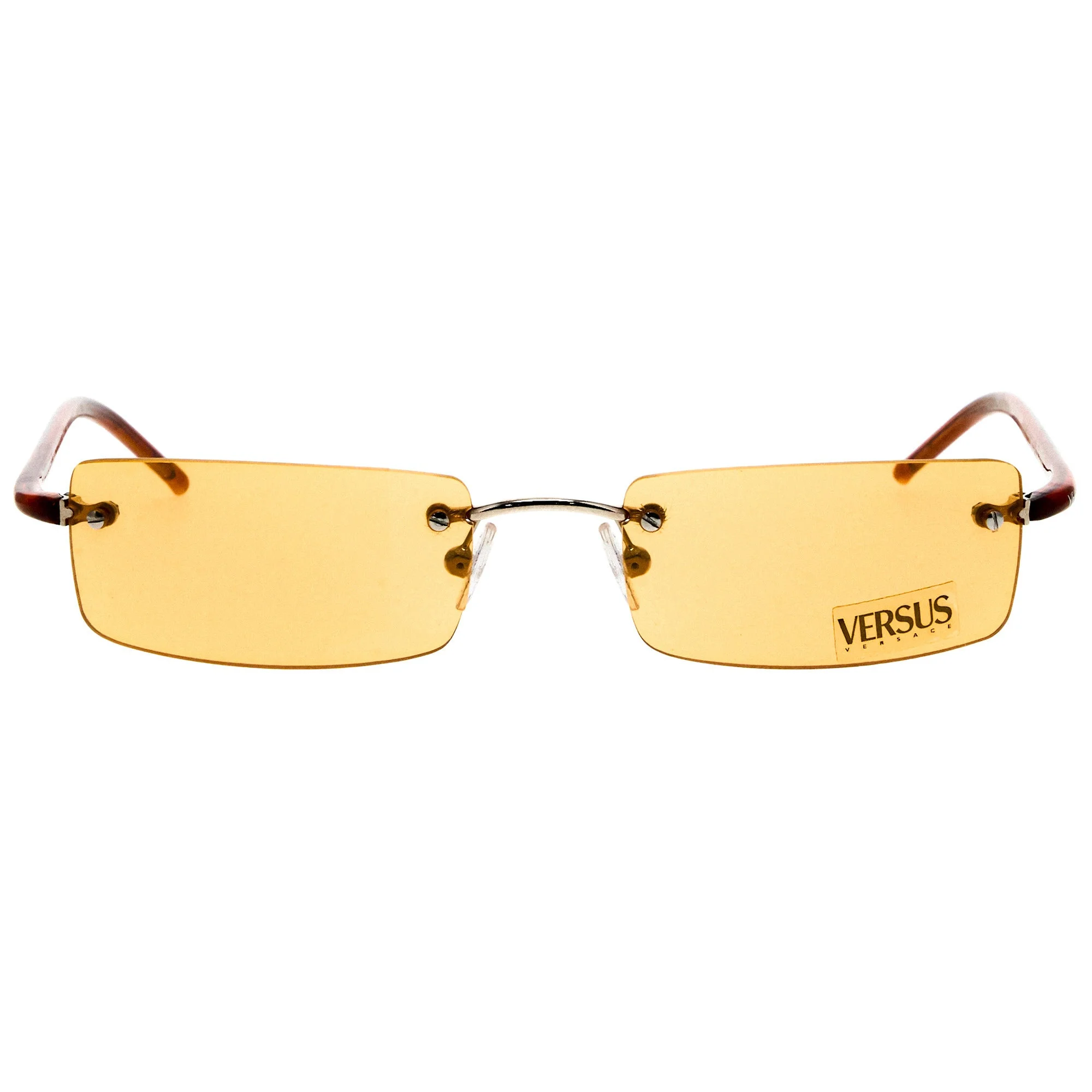 The Versus by Versace C29S 171 251 sunglasses, with its orange frame and iconic rectangular silhouette, is a rare vintage sunglasses find for collectors. Versus, created by Gianni Versace in 1989, was born from a desire to challenge fashion norms. The name Versus was meant to symbolize a departure from convention, appealing to a generation that valued creativity and individuality. Vintage Versus sunglasses capture this rebellious energy with their bold colors, unique shapes, and iconic lion head logo. These sunglasses quickly became synonymous with youthful luxury, and today they’re highly sought-after collectibles, prized for their distinct style and quality craftsmanship. At Vintage Frames Company, we proudly offer the largest collection of vintage Versus sunglasses, each piece a reflection of the brand’s innovative legacy. Our collection allows you to own a piece of Versus’s bold history, celebrating a brand that dared to be different.