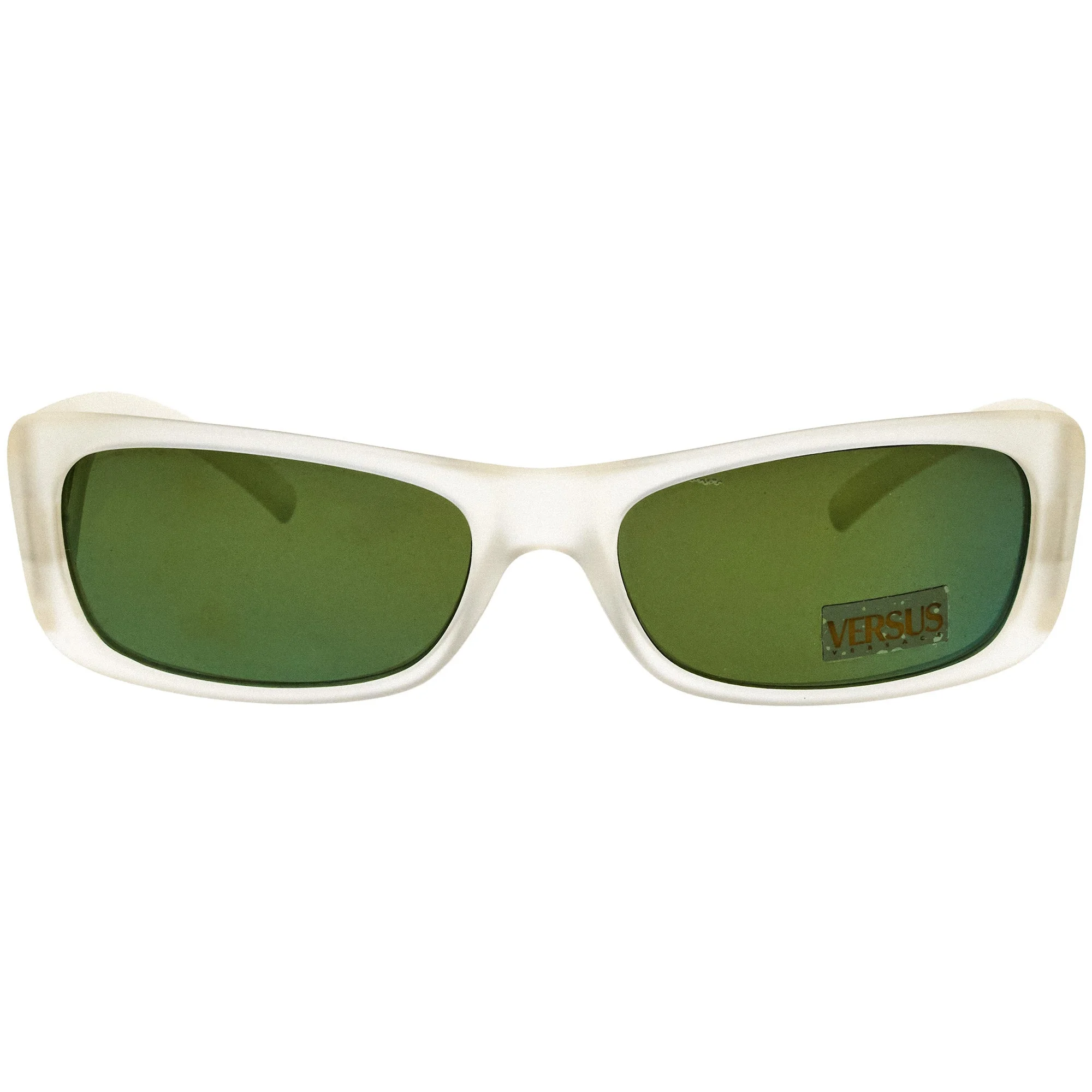 The Versus by Versace E89 657 188 sunglasses, with its transparent frame and iconic rectangular silhouette, is a rare vintage sunglasses find for collectors. Versus was founded in 1989 by Gianni Versace as a brand that would stand apart, embracing a rebellious attitude and challenging traditional fashion. The name Versus symbolized a contrast, celebrating bold colors, unique designs, and a youthful, adventurous spirit. Vintage Versus sunglasses reflect this vision with their rich hues, daring shapes, and distinctive lion head logo. These sunglasses became icons of the 1990s, and their rarity today has made them highly collectible among fashion enthusiasts. Vintage Frames Company is proud to carry the largest selection of vintage Versus sunglasses, offering pieces that embody the brand’s spirit of creativity and confidence. Our collection allows you to own a piece of Versus’s legacy, capturing the bold elegance that defined the brand.