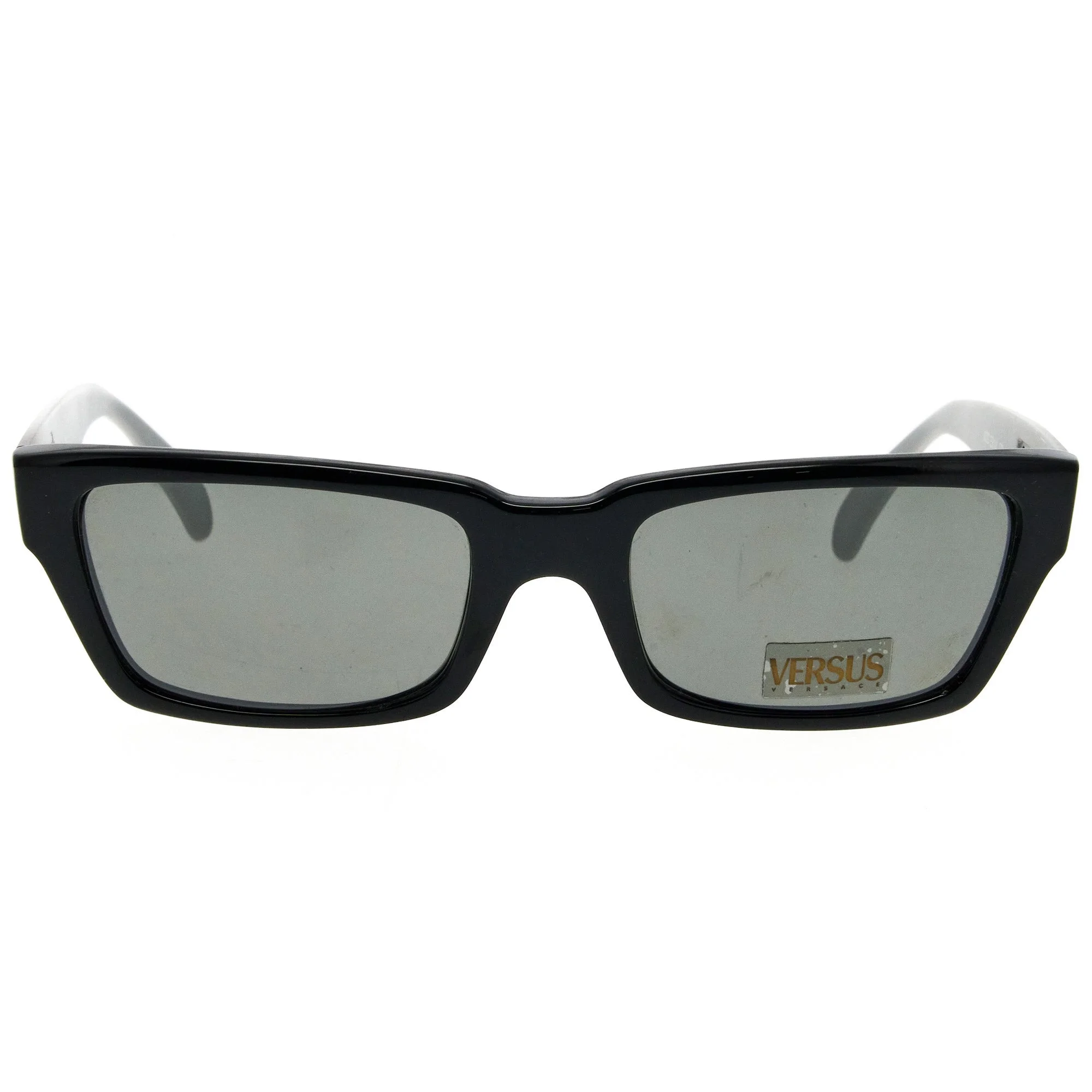 The Versus by Versace ES1M 852 sunglasses, with its black/gray frame and iconic rectangular silhouette, is a rare vintage sunglasses find for collectors. In 1989, Gianni Versace launched Versus as a tribute to those who sought individuality and embraced bold style. The name Versusembodied a spirit of rebellion, offering an alternative to classic fashion with vibrant colors, experimental shapes, and distinctive lion head details. Vintage Versus sunglasses capture this bold attitude, creating pieces that remain iconic in fashion history. Highly collectible, these sunglasses are celebrated for their unique design and the spirit of independence they represent. Vintage Frames Company is proud to offer the largest collection of vintage Versus sunglasses, each pair chosen for its quality and style. With our collection, you can connect with the legacy of Versus, adding a piece of high-fashion history to your wardrobe.