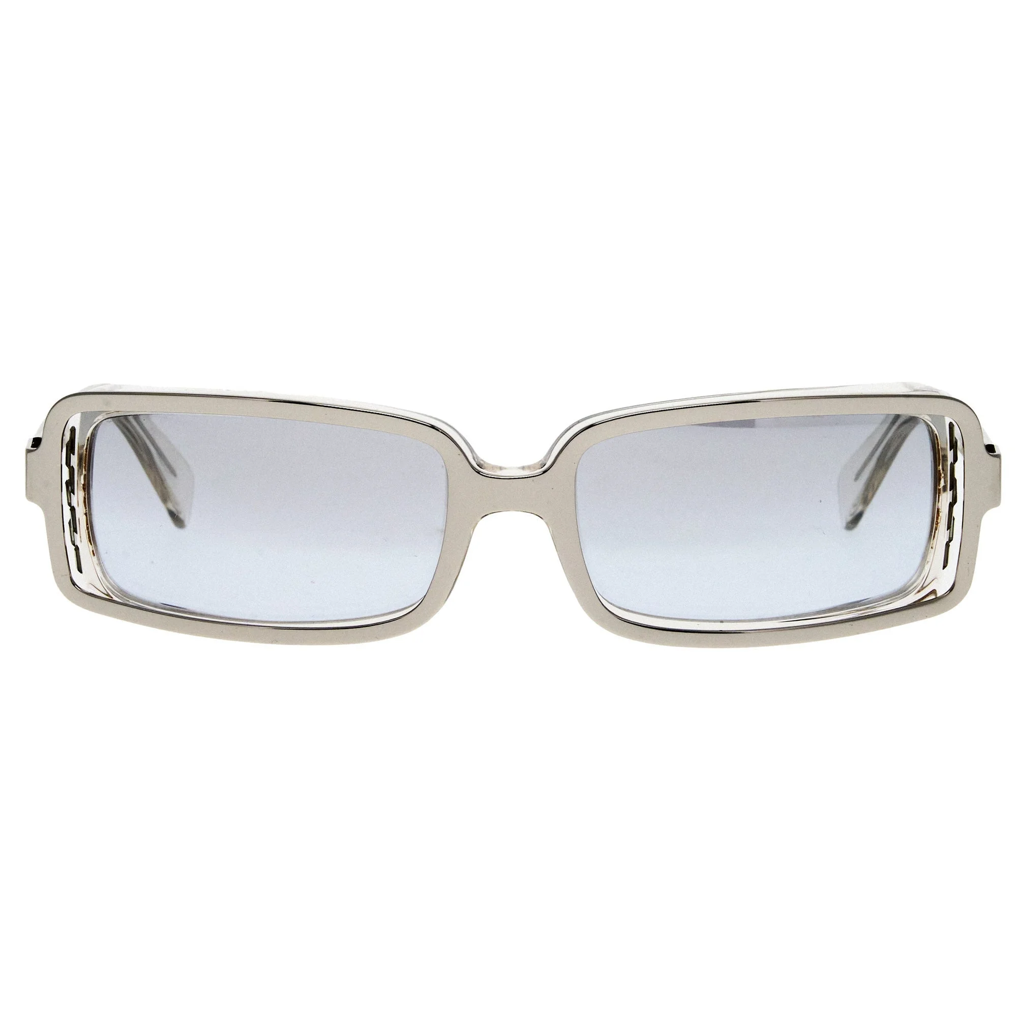 Step into timeless sophistication with Vintage Vogue sunglasses, where elegant design meets unparalleled craftsmanship. Renowned for their blend of bold statements and refined aesthetics, Vogue eyewear captured the fashion-forward spirit of the 1980s and 1990s, making them a go-to for trendsetters of the era. Crafted with premium materials and characterized by sleek shapes, oversized frames, and intricate detailing, these sunglasses are more than accessories—they are wearable art. Perfectly embodying the allure of vintage fashion, they remain a must-have for collectors and enthusiasts seeking iconic style. Explore Vintage Frames Company’s carefully curated collection of unworn, authenticated Vintage Vogue sunglasses and own a piece of eyewear history. The Vogue VO2291 S B W7457 6T vintage sunglasses, with its silver/transparent frame and iconic rectangular silhouette, is a rare vintage sunglasses find for collectors.