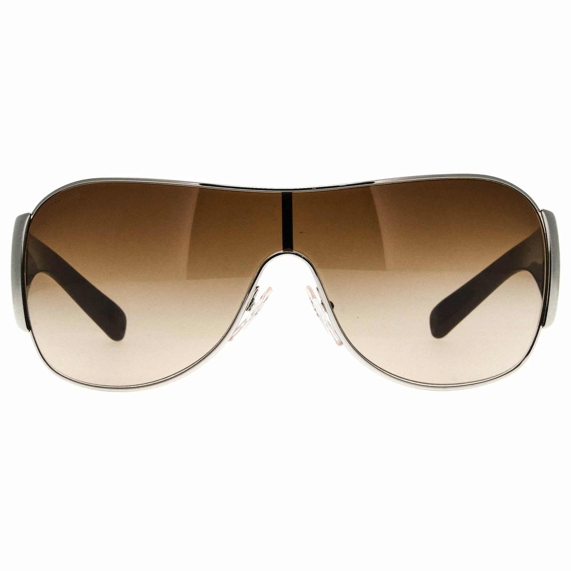 The Prada SPR 63I 1BC-6S1 sunglasses, with its silver / brown frame and iconic shield silhouette, is a rare vintage sunglasses find for collectors. Designed by Miuccia Prada, the vintage Prada sunglasses of the 1990s and early 2000s showcase the brand’s signature fusion of innovation and elegance. Prada is known for setting trends and pushing boundaries in luxury fashion, and its sunglasses are no exception. Stars like Madonna and George Clooney were frequently seen sporting Prada, while today, icons such as Hailey Bieber embrace the timeless charm of vintage Prada sunglasses. Vintage Frames Company boasts the largest archive of designer vintage sunglasses in the world, featuring the most comprehensive selection of vintage Prada sunglasses.
