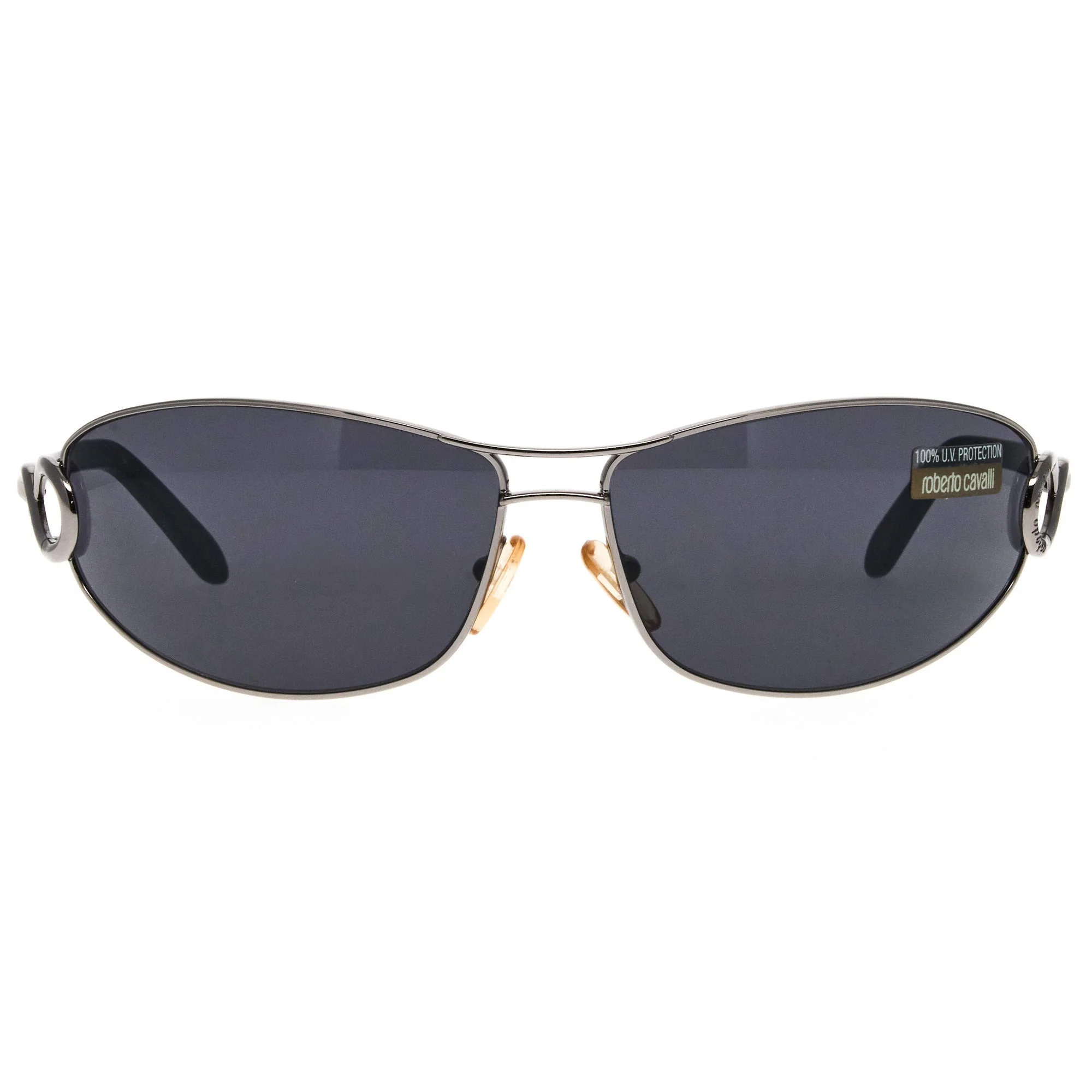 The Roberto Cavalli 100S 731 vintage sunglasses, with its silver/black frame and iconic rectangular silhouette, is a rare vintage sunglasses find for collectors. Infused with the wild energy of Cavalli’s ready-to-wear collections, his vintage sunglasses from the 1990s and 2000s are unmistakable in their glamour. Decorative metalwork, oversized proportions, and bold branding define these statement pieces. As fashion turns back toward expressive individuality, Cavalli’s eyewear has found renewed relevance among tastemakers and stylists. Explore exclusive vintage Cavalli sunglasses now at Vintage Frames Company.