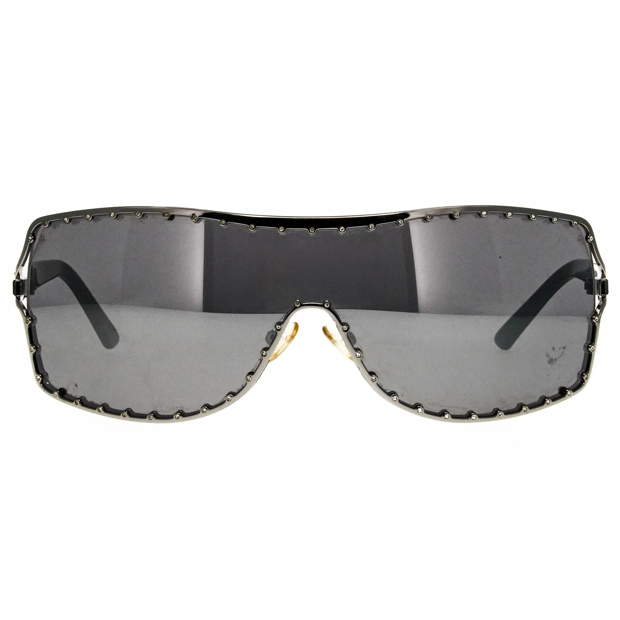 Steeped in Italian heritage and high-fashion excellence, vintage Valentino sunglasses are a testament to the brand’s commitment to luxury craftsmanship. Whether featuring intricate gold accents, oversized frames, or sleek architectural lines, these sunglasses embody the sophistication that Valentino is renowned for. Each pair is designed with precision, merging classic elegance with contemporary edge to create eyewear that stands the test of time. Coveted by collectors and fashion aficionados alike, these sunglasses remain essential pieces in luxury wardrobes. The Vintage Frames Company offers an expertly curated selection of authentic Valentino sunglasses, preserving their place in fashion history. The Valentino 5435S 6SH vintage sunglasses, with its silver/black frame and iconic shield silhouette, is a rare vintage sunglasses find for collectors.