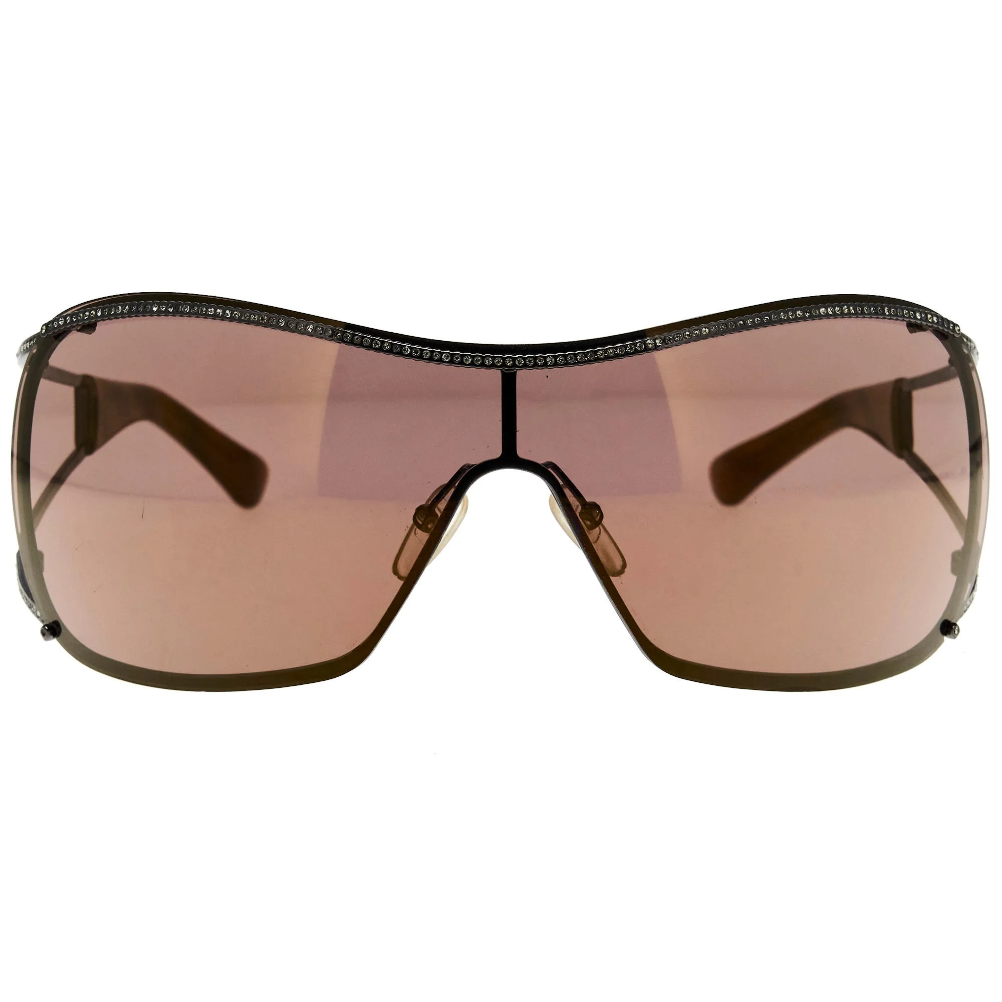Vintage Valentino sunglasses embody the essence of timeless luxury, designed for those who appreciate the perfect balance of classic elegance and cutting-edge style. As a brand known for its meticulous craftsmanship and high-fashion influence, Valentino has introduced eyewear that seamlessly blends bold aesthetics with refined sophistication. These sunglasses feature everything from dramatic oversized shapes to sleek metallic finishes, making them the ultimate statement pieces. Designed to stand the test of time, they remain highly sought after by collectors and trendsetters alike. Vintage Frames Company curates an extensive collection of Valentino’s most iconic sunglasses, ensuring their legacy continues to shine in the world of luxury eyewear. The Valentino 5493S RVP9E vintage sunglasses, with its black/purple frame and iconic shield silhouette, is a rare vintage sunglasses find for collectors.