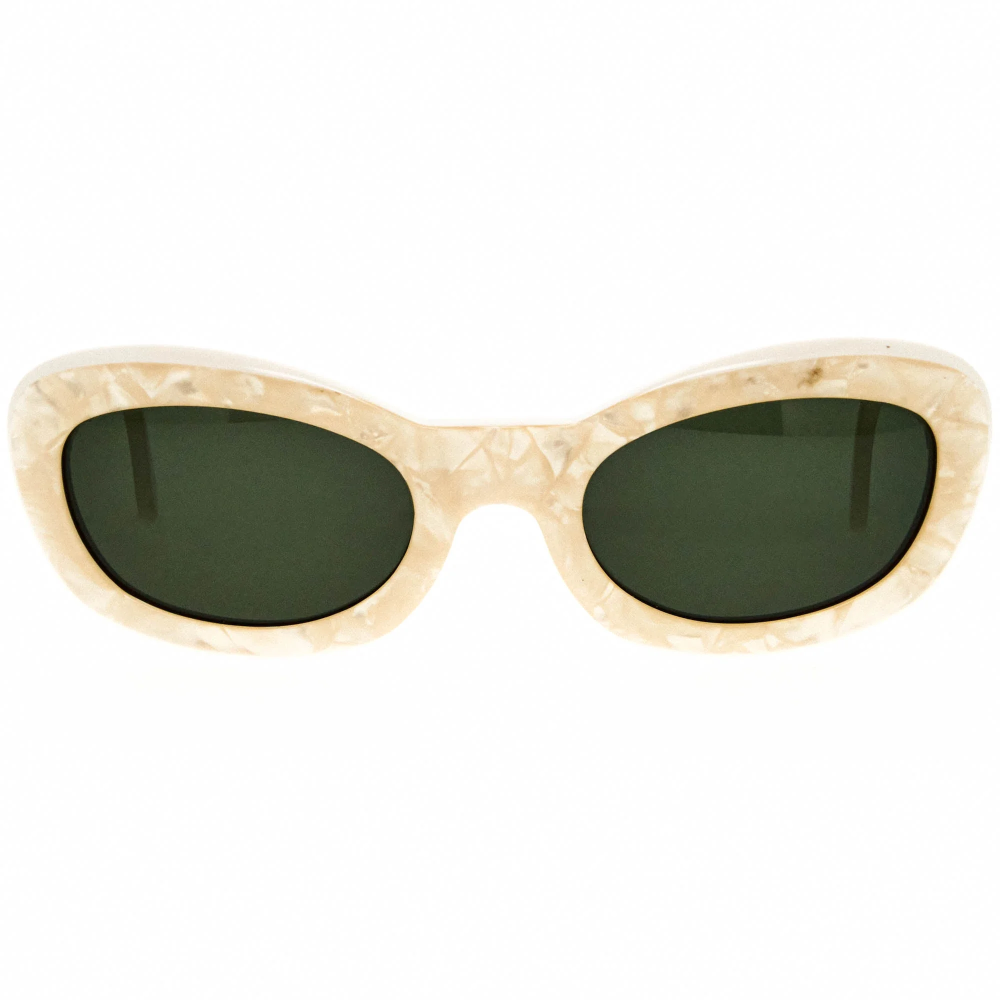 Vintage Valentino sunglasses exude a level of sophistication and craftsmanship that defines the very essence of luxury eyewear. The Valentino brand, synonymous with couture excellence, introduced eyewear collections that seamlessly balanced refined aesthetics with bold artistic elements. These sunglasses are characterized by their attention to detail—whether through sculpted acetate frames, intricate metal finishes, or signature Valentino embellishments. Designed to be both functional and fashion-forward, each pair embodies a sense of timeless glamour, making them treasured pieces for collectors and style icons alike. The Vintage Frames Company is proud to offer a rare collection of vintage Valentino sunglasses, ensuring that these masterpieces of Italian design remain accessible to those who appreciate their enduring beauty. The Valentino V699 677 vintage sunglasses, with its white frame and iconic cat eyes silhouette, is a rare vintage sunglasses find for collectors.