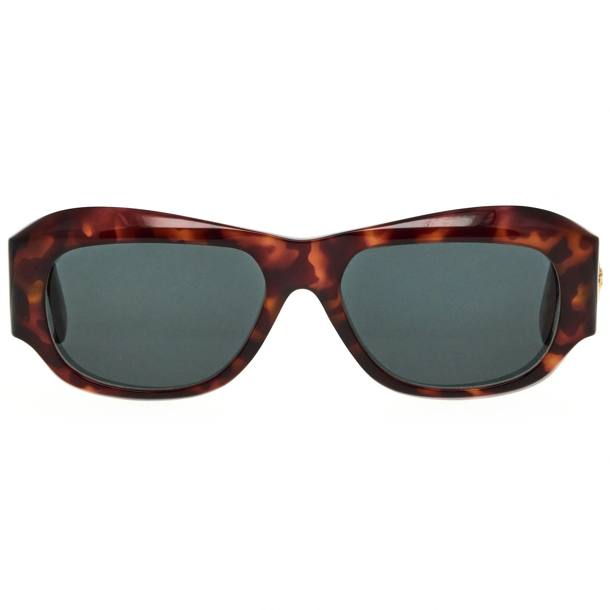The Versace 375 869 sunglasses, with its brown tortoise frame and iconic square silhouette, is a rare vintage sunglasses find for collectors. Our vintage Versace sunglasses capture the bold spirit and luxury that defined 1990s fashion, thanks to the visionary designs of Gianni Versace. Known for their Medusa heads and Greek Key motifs, these sunglasses are iconic symbols of Versace’s artistry. The Medusa represents allure and mystery, while the Greek Key is a tribute to Italian heritage and unity. In the ‘90s, Versace sunglasses were synonymous with the elite, from Hollywood stars to music legends, who made these frames a status symbol. Each pair became a statement of luxury and confidence, capturing the era’s glamor. Vintage Frames Company is proud to house the largest selection of authentic vintage Versace sunglasses globally, ensuring that every pair embodies the craftsmanship and style that made Versace legendary. Explore our curated collection and add a touch of 1990s elegance to your wardrobe with Vintage Frames Company, where history and fashion collide.