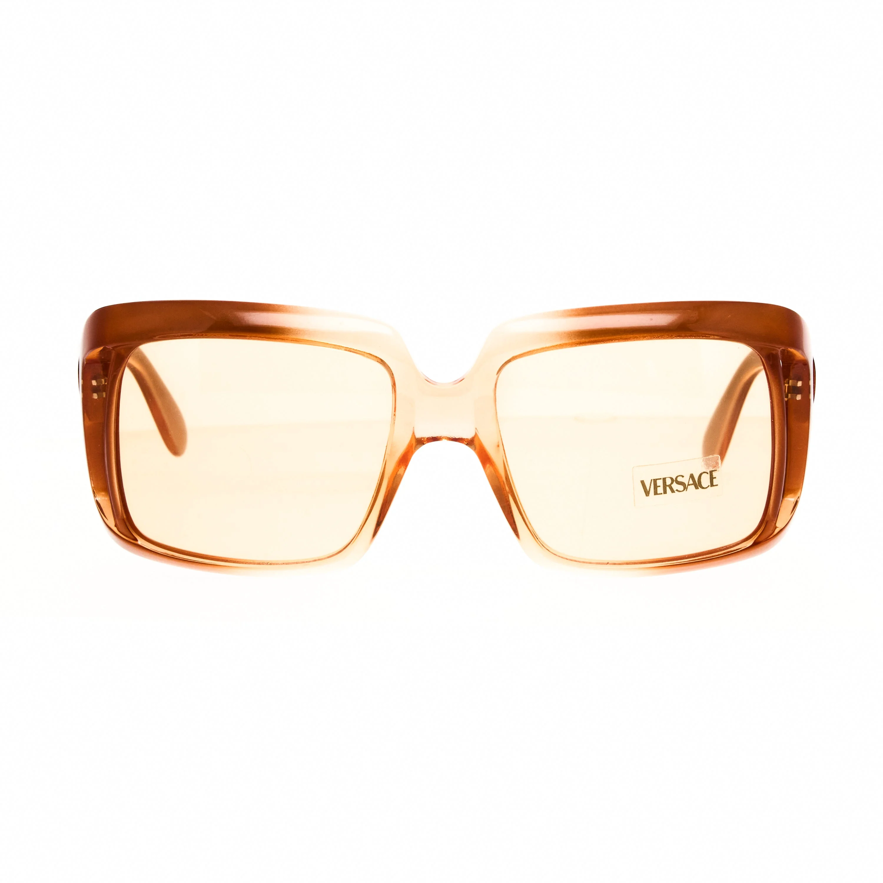 The Versace 384 Col 363 sunglasses, with its orange frame and iconic square silhouette, is a rare vintage sunglasses find for collectors. The luxury craftsmanship of vintage Versace sunglasses is what sets them apart in the world of designer eyewear. Gianni Versace’s designs are known for their use of premium materials, including gold plating, high-grade metals, and polished finishes that exude sophistication. Each pair of sunglasses features intricate details, from the iconic Medusa head to the Greek Key, which are carefully etched or embossed with precision. Versace’s commitment to quality is evident in every aspect of these frames, making them both stylish and durable. At Vintage Frames Company, we proudly hold the largest collection of vintage Versace sunglasses, each piece a testament to the high standards of craftsmanship that define Versace’s legacy. Our collection allows you to experience the elegance and durability of Versace’s work, offering eyewear that transcends fashion trends and represents timeless luxury.