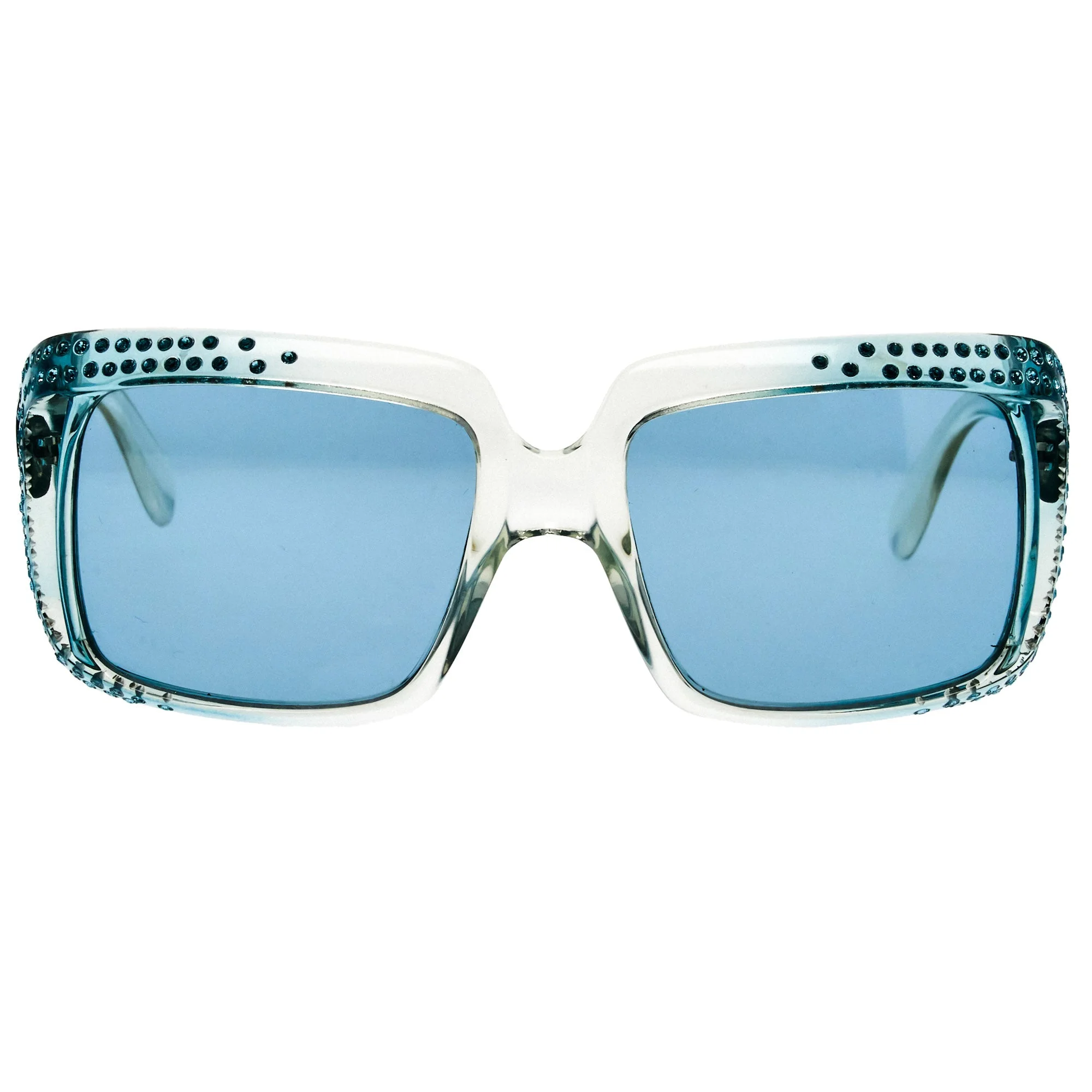 The Versace 384S 742 sunglasses, with its blue transparent frame and iconic square silhouette, is a rare vintage sunglasses find for collectors. Vintage Versace sunglasses became iconic symbols of Miami’s vibrant fashion scene in the 1990s, embodying the city’s bold style and cosmopolitan flair. Gianni Versace, inspired by Miami’s energy, crafted designs that celebrated luxury and extravagance. The Medusa head and Greek Key patterns symbolized beauty and Italian heritage, turning each pair into a statement piece. In Miami, where the sun shines year-round and fashion thrives, these sunglasses were essential, worn by celebrities, socialites, and trendsetters who made Miami their playground. As Versace’s designs were embraced globally, these sunglasses brought a piece of Miami’s unique style to cities around the world, spreading the daring, sun-soaked elegance of South Beach. Vintage Frames Company is proud to carry the largest collection of authentic vintage Versace sunglasses, offering you the chance to experience Miami’s influence on fashion firsthand. Our collection celebrates a legacy that began in Miami but resonated with style lovers everywhere.
