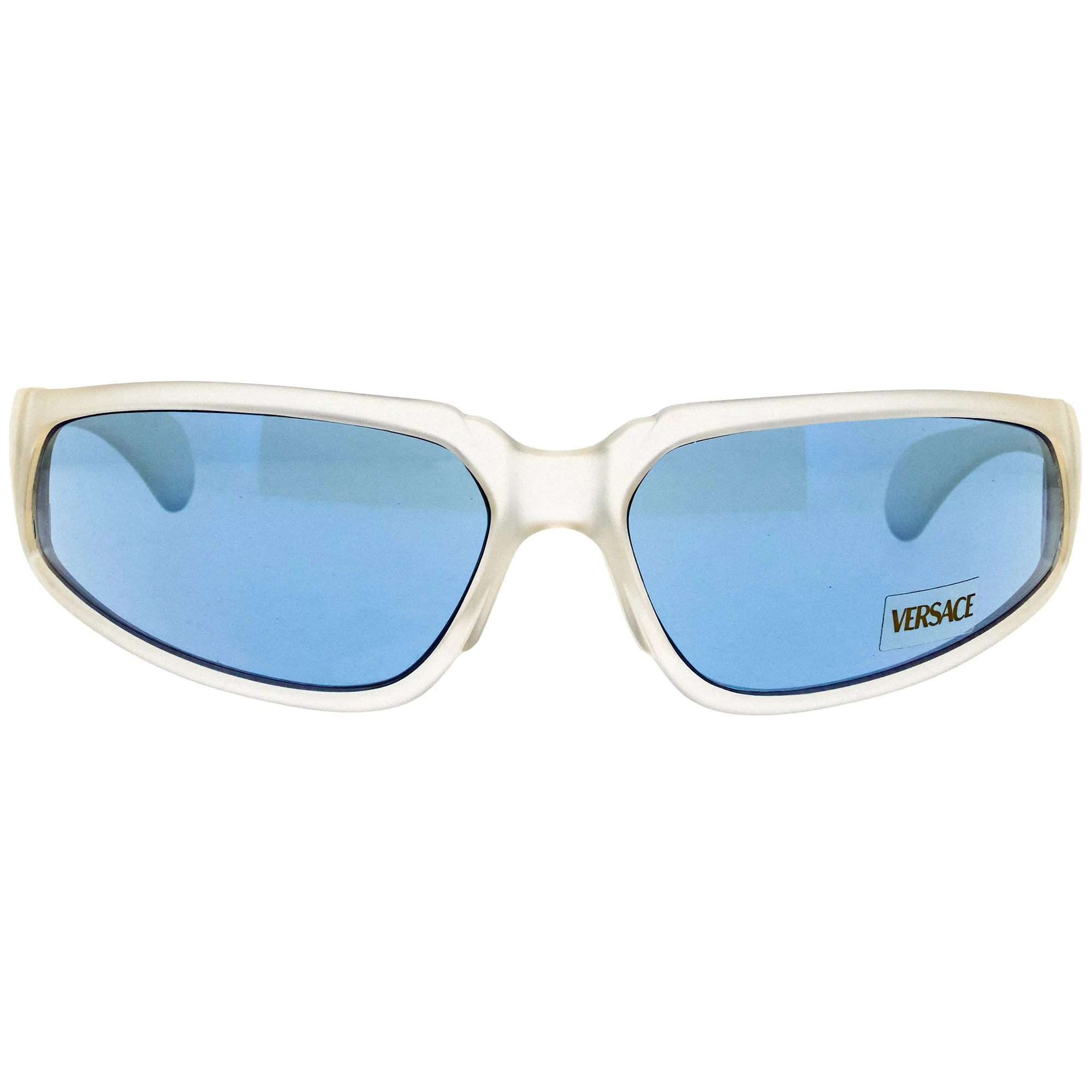 The Versace 444 G57 268 sunglasses, with its transparent frame and iconic rectangular silhouette, is a rare vintage sunglasses find for collectors. The bold colors of vintage Versace sunglasses have made them a favorite among today’s music icons, who love to mix luxury with unique style. Artists like Lizzo, The Weeknd, and J Balvin are often seen in Versace’s vibrant frames, choosing hues like deep blues, fiery reds, and classic gold to add a luxurious touch to their looks. These colors, along with the Medusa and Greek Key designs, give Versace sunglasses an unmistakable identity, making them perfect for artists who want to make a statement. Vintage Frames Company proudly holds the largest collection of vintage Versace sunglasses, offering you the same colorful, high-fashion eyewear that top musicians adore. With our collection, you can embrace the bold elegance and personality that defines Versace’s style, capturing a bit of the energy that makes these frames so beloved in the music world.