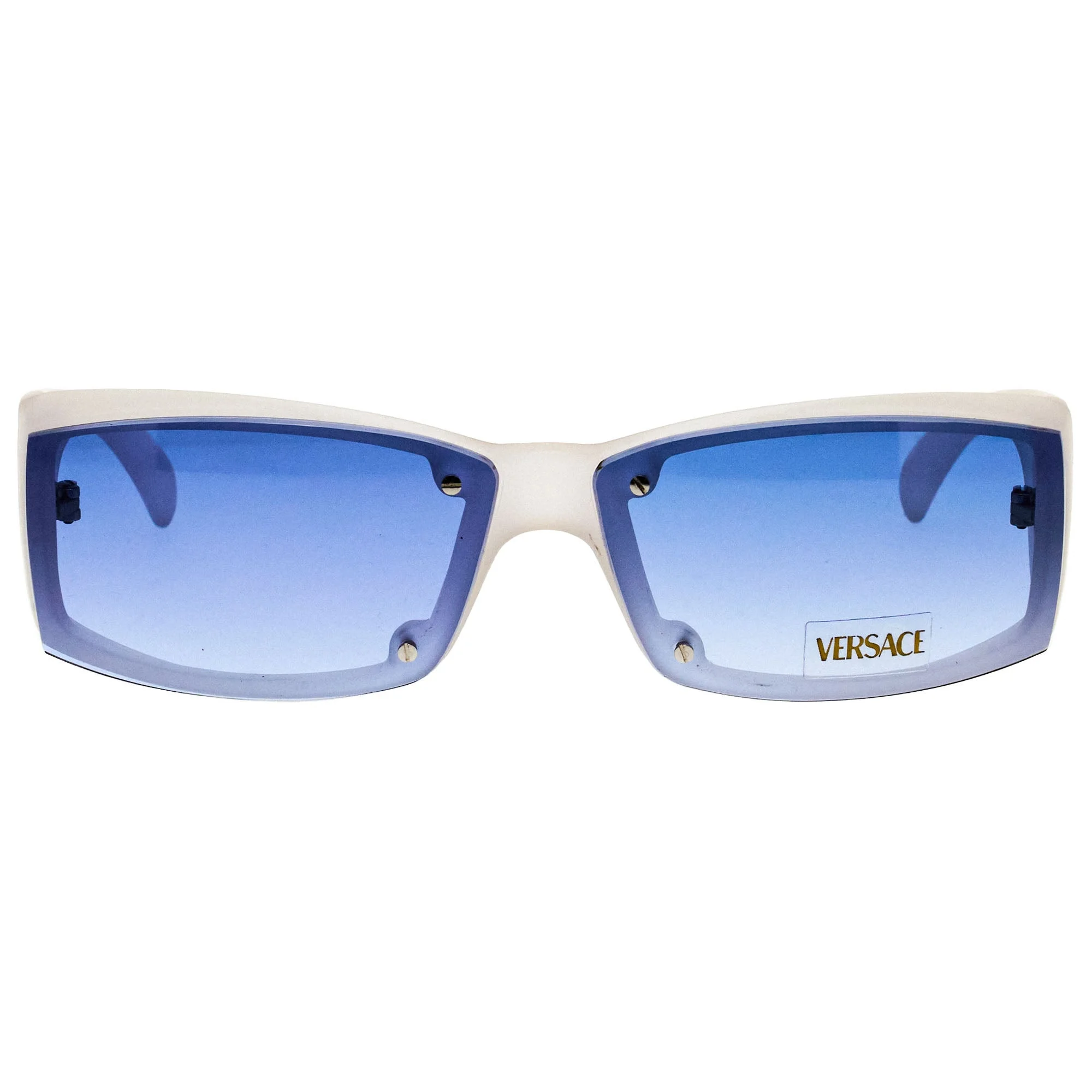 The Versace 483 657 421 sunglasses, with its transparent frame and iconic rectangular silhouette, is a rare vintage sunglasses find for collectors. Vintage Versace sunglasses have become a must-have for today’s music icons, embraced by stars like J Balvin, Megan Thee Stallion, and Lil Nas X. These artists are drawn to the bold elegance of Versace’s designs, each frame crafted with attention to detail and featuring signature elements like the Medusa and Greek Key. Versace sunglasses allow musicians to make powerful statements, whether in music videos, concerts, or their everyday lives. Vintage Frames Company proudly carries the largest collection of vintage Versace sunglasses, giving you access to the same luxury pieces loved by the music industry’s most stylish figures. With our collection, you can capture the same edgy sophistication that defines today’s most influential artists, making a statement that’s uniquely your own.