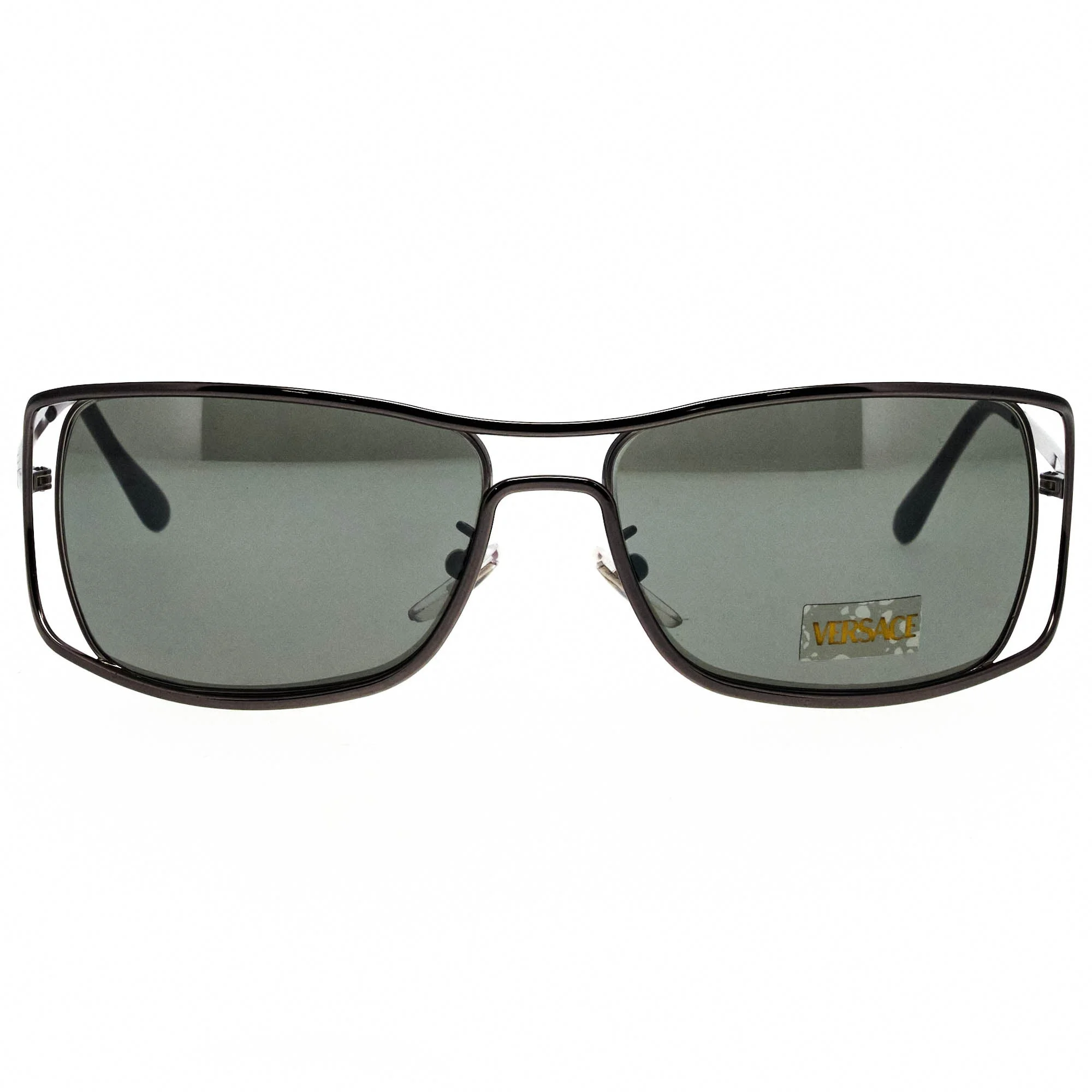 The Versace N14 89M 247 sunglasses, with its black frame and iconic rectangular silhouette, is a rare vintage sunglasses find for collectors. When it comes to elegance and edge, Vintage Versace Sunglasses are the ultimate fashion statement. Gianni Versace's Italian fashion house, started in Milan in the late 1970s, reflects opulence and innovation, especially in eyewear. The Medusa logo, a hallmark of the brand, symbolizes seduction and strength, making these sunglasses a piece of wearable art. Each pair at Vintage Frames Company is fully authenticated, upholding Versace's dedication to excellence. Experience iconic luxury with Vintage Versace Sunglasses from the largest designer vintage archive.