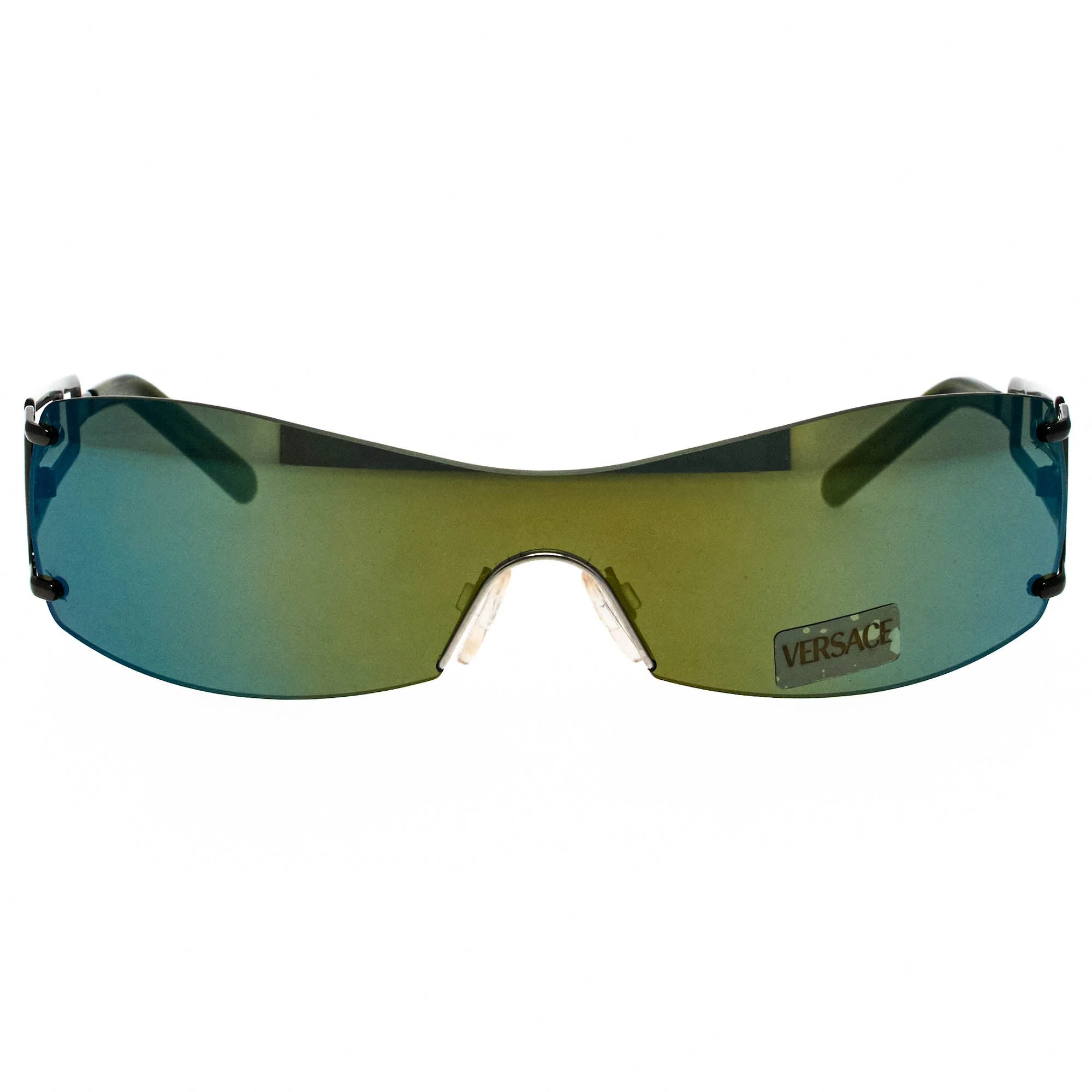 The Versace X84 89M 188 sunglasses, with its gray/green frame and iconic shield silhouette, is a rare vintage sunglasses find for collectors. Vintage Versace sunglasses are essential for today’s top musicians, bringing a sense of luxury and boldness to their unique styles. Artists like Rosalia, ASAP Ferg, and Billie Eilish have been seen in Versace’s iconic frames, each pair embodying the brand’s dedication to craftsmanship and distinctive style. These sunglasses, known for their Medusa and Greek Key motifs, have become go-to accessories for musicians who want to stand out. Vintage Frames Company is proud to offer the largest collection of vintage Versace sunglasses, allowing you to capture the same elegant flair as your favorite artists. With our curated selection, you can add a touch of high-end glamor to your style, channeling the confidence and creativity that define music’s biggest stars.