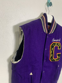 Hi,welcome to my store 😘 -✅All Binding OFFER ACCEPTED✅✅ Make sure see All detail pictures before make an offer -No Refund -No return MEASUREMENT(are all in inch) Size On Tag- ▶️Armpit-21.7”inch ▶️Lenght-26.4”inch from top to bottom ▶️Hem-18.5”inch ▶️Shoulder-18.5”inch Condition-still good to use but don’t expect it’s still in good like new (Original varsity jacket but Sleeve have been cut off) BUY WITH CONFIDENT 💪🏻 🔥Do follow my Store for more Item update Shipping service and fee -$35