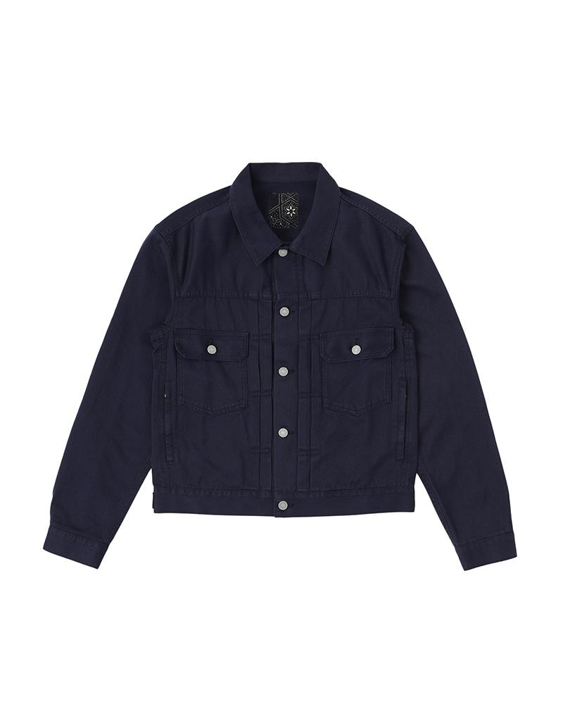 101 JKT COLOR: BLACK, INDIGO, GREY SIZE: 1, 2, 3, 4, 5 A Chino Cloth Jacket made from a densely woven long staple cotton Damaged Finish Red Selvedge Zip closure side pockets Original fastener slider, Copper buttons and rivets Natural dyed buckskin patch 100% COTTON UNIT:cm Please be aware that the vintage fabric, bandanas, blanket, and african indigo fabric used may vary in color and pattern from item to item. With time, these fabrics may also become weaker and less tear-resistant. Also, due to the use of natural dyes, the outward appearance of items may vary slightly from one another. For certain items, mud may be applied for an added effect. Products may shrink slightly when washed. SIZE LENGTH CHEST SHOULDER SLEEVE 1 57 99.5 46.5 59.3 2 59.5 104.5 48.5 60.8 3 62 109.5 50.5 62.3 4 64.5 114.5 52.5 63.8 5 67 119.5 54.5 65.3
