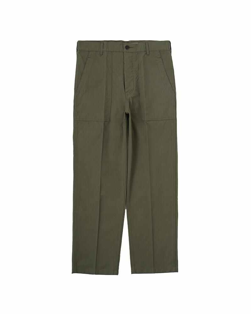 ALDA PANTS COLOR: NAVY, OLIVE, KHAKI SIZE: 1, 2, 3, 4, 5 Densely woven long staple weathercross work pants One-wash finish Custom water buffalo buttons Original cinch back Please Note : 100% Cotton SIZE 1 : Length 101.7 , Inseam 71.1 , Waist 82 , Thigh width 32.3 , Hem 20.5 (cm) SIZE 2 : Length 104.2 , Inseam 73.1 , Waist 87 , Thigh width 33.5 , Hem 21.7 (cm) SIZE 3 : Length 106.7 , Inseam 75.1 , Waist 92 , Thigh width 34.7 , Hem 22.9 (cm) SIZE 4 : Length 109.2 , Inseam 77.1 , Waist 97 , Thigh width 35.9 , Hem 24.1 (cm) SIZE 5 : Length 111.7 , Inseam 79.1 , Waist 102 , Thigh width 37.1 , Hem 25.3 (cm) The color and pattern of the fabric used may differ slightly from the image. Some shrinkage may occur after washing. Please be aware.
