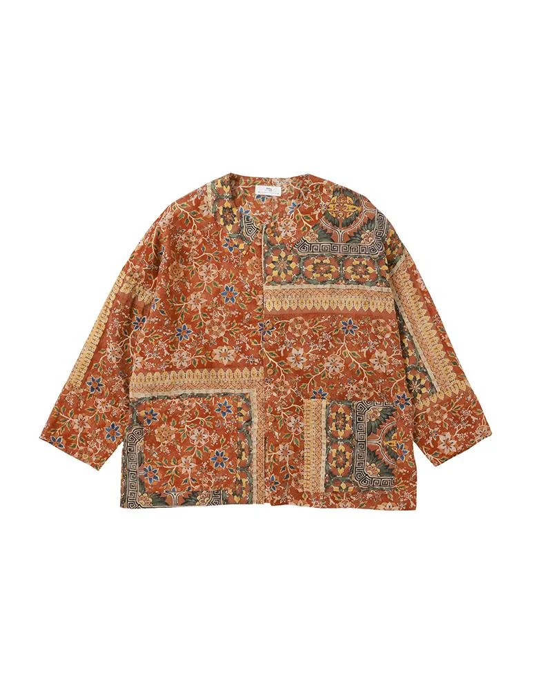 AUGUSTINE TUNIC KHADI BANDANA P.W. W COLOR: BLUE, BROWN SIZE: 0, 1, 2, 3 Custom Hand Woven Indian Khadi Tunic Custom Pattern Print One Wash Custom Bamboo Buttons 100% Cotton Made in Japan UNIT:cm : SIZE LENGTH CHEST SHOULDER SLEEVE 0 64.5 118.5 69 35 1 66 122.5 71 36.2 2 67.5 127.5 73.5 37.4 3 69 132.5 76 38.6