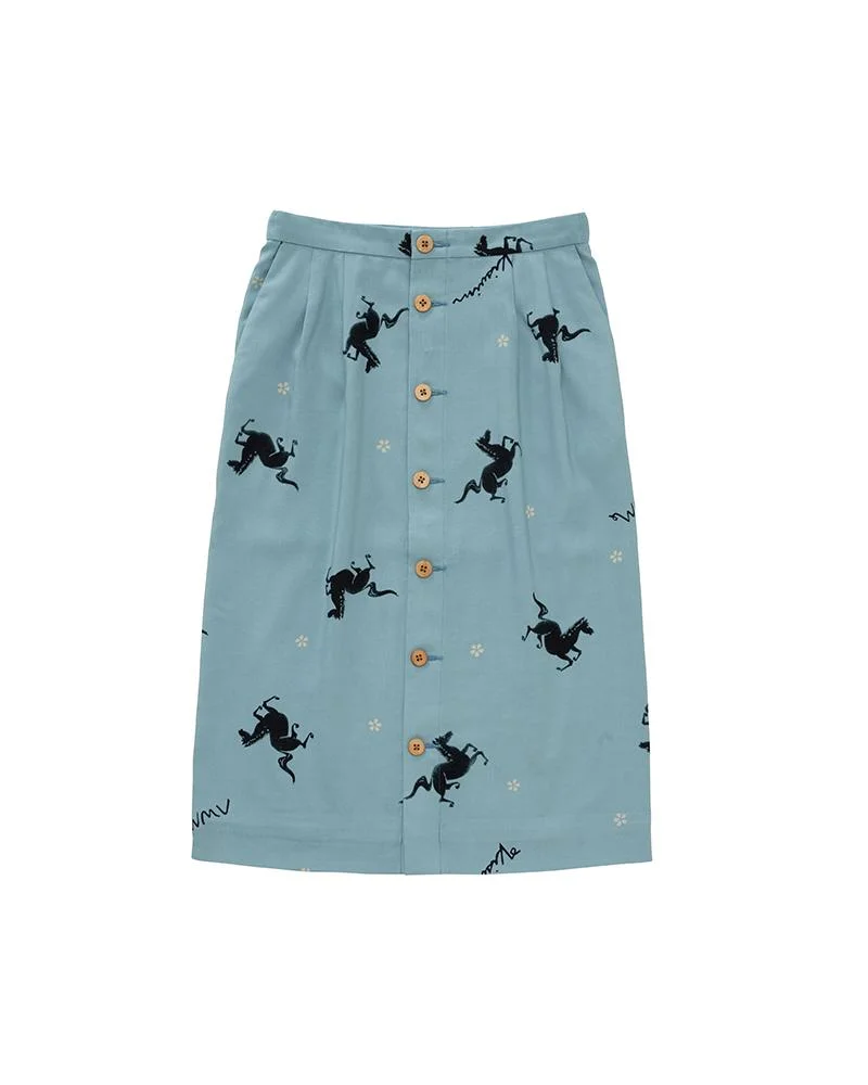 B.D. SKIRT W COLOR: BLACK, LT.GREEN SIZE: 00, 0, 1, 2, 3 Custom Rayon Canvas Skirt Custom Pattern Print Pressed Finish Custom Water Buffalo Buttons 100% Rayon Made in Japan UNIT:cm : SIZE LENGTH WAIST 00 60.5 68.4 0 65.5 68.4 1 67 72.4 2 68.5 76.4 3 70 80.4