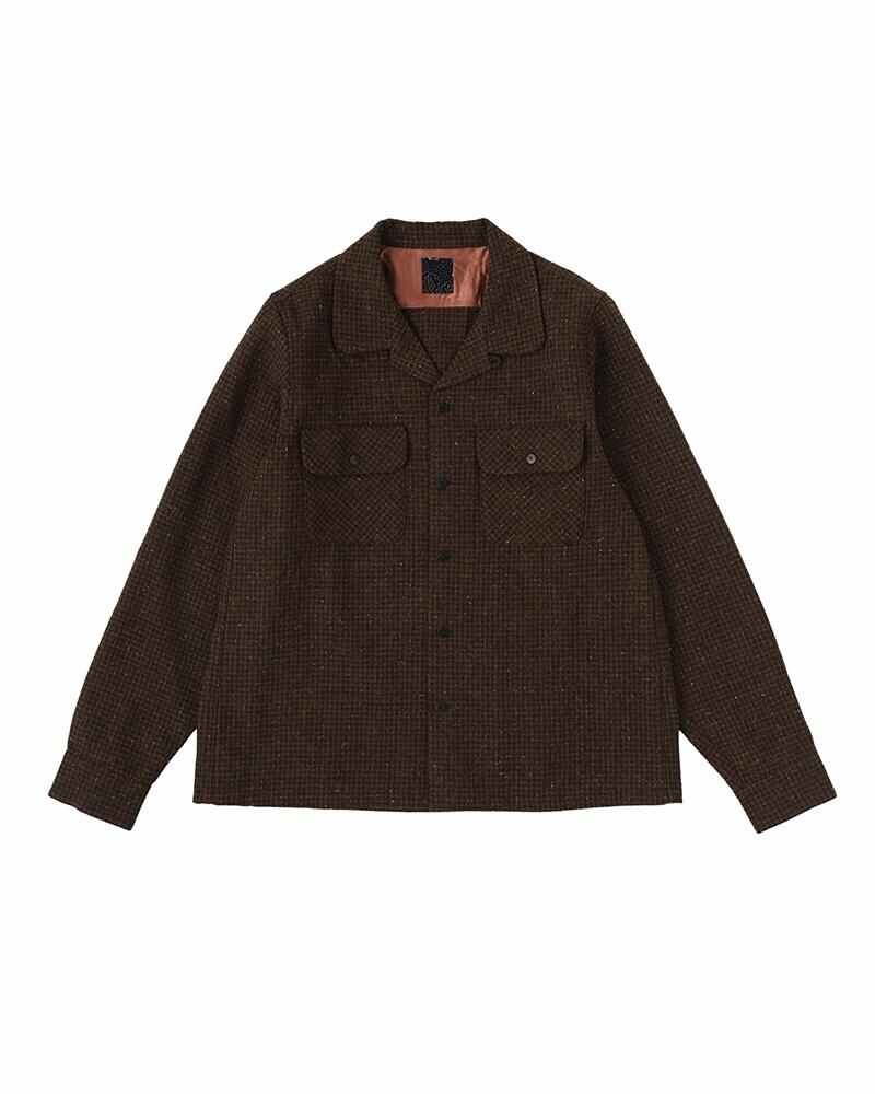 BOOMER SHIRT L/S COLOR: BROWN, NAVY, RED SIZE: 1, 2, 3, 4, 5 Long sleeve shirt made of tweed fabric from Donegal, Ireland Original buffalo buttons Pressed finish Please Note : 100% Wool SIZE 1 : Length 67 , Shoulder 41 , Sleeve length 65.8 , Chest 113 (cm) SIZE 2 : Length 69 , Shoulder 42.5 , Sleeve length 67.3 , Chest 117 (cm) SIZE 3 : Length 71 , Shoulder 44 , Sleeve length 68.8 , Chest 121 (cm) SIZE 4 : Length 73.5 , Shoulder 46 , Sleeve length 70.3 , Chest 126 (cm) SIZE 5 : Length 76 , Shoulder 48 , Sleeve length 71.8 , Chest 131 (cm) Please be aware that the vintage fabric, bandanas, blanket, and African indigo fabric used may vary in color and pattern from item to item. With time, these fabrics may also become weaker and less tear-resistant. Also, due to the use of natural dyes, the outward appearance of items may vary slightly from one another. For certain items, mud may be applied for an added effect. Products may shrink slightly when washed.