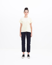 BOX TEE S/S CRASH W COLOR: NAVY, PURPLE, YELLOW SIZE: 0, 1, 2, 3 Crewneck Short Sleeve T-Shirt Garment Dyed Damaged Finish 100% COTTON UNIT:cm Please be aware that there may be slight variations in the color of the fabric and pattern than shown in the images. There will be slight shrinkage when washing for the first time. SIZE LENGTH CHEST SHOULDER SLEEVE 0 62.5 96 39 15 1 64.5 100 40.5 15.5 2 66.5 105 42.5 16.5 3 68.5 110 44.5 17.5
