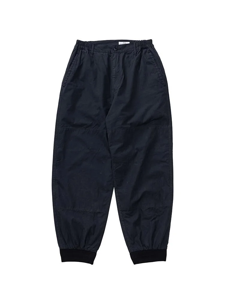 CADDO PANTS DMGD COLOR: BLACK, OLIVE, BEIGE SIZE: 1, 2, 3, 4, 5 Custom Weave Cotton Nylon Blend Pants Natural Dyed and Damaged Finish Custom Ribbing, Water Buffalo Buttons, and Zip Fastener 81% Cotton 19% Nylon Made in Japan UNIT:cm : SIZE LENGTH INSEAM WAIST THIGH WIDTH HEM 1 100.5 68.2 72 37.9 16 2 103 70.2 76 38.9 17 3 105.5 72.2 80 39.9 18 4 108 74.2 85 41.1 19.2 5 110.5 76.2 90 42.3 20.4