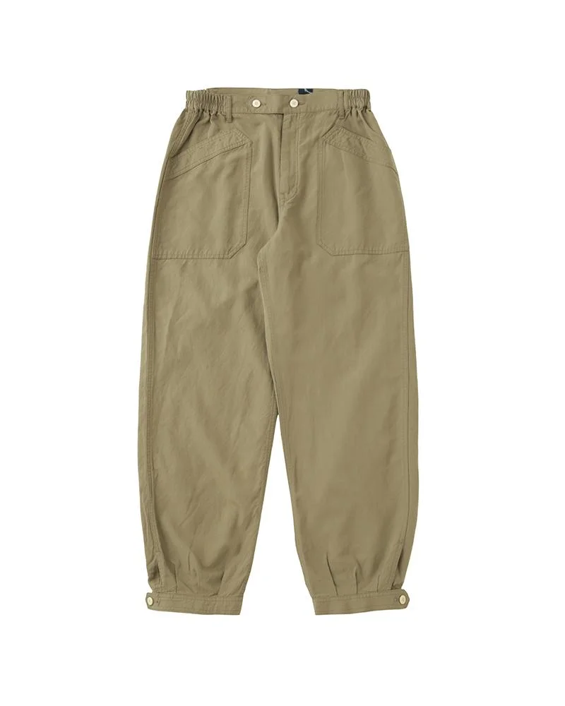 CARROL PANTS COLOR: BLACK, NAVY, BEIGE SIZE: 1, 2, 3, 4, 5 A Pant inspired from Vintage Racing Pants made with a Custom Wool and Linen Gabardine material One Wash Finish Custom Water Buffalo Buttons and Zip Fastener 83% Wool 17% Linen UNIT:cm : Please be aware that there is a possibility for slight variations in the color appearance and pattern on the fabric that is utilized for this product; each finished garment may be different from the displayed product image. There may also be some shrinkage following the first wash of this product. The Kofu, Bandana, Blanket, African Indigo textile and vintage fabrics used for the name tag and actual product itself vary in color and pattern where no two pieces are alike. Additionally, the degree of deterioration will vary with each fabric depending on its age and historical use so these products should be considered more fragile in comparison to our regularly manufactured products. SIZE LENGTH INSEAM WAIST THIGH WIDTH HEM 1 104 72.2 72 36.7 16.7 2 106.5 74.2 76 37.7 17.7 3 109 76.2 80 38.7 18.7 4 111.5 78.2 85 39.9 19.9 5 114 80.2 90 41.1 21.1