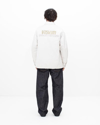 COACH DOWN JKT COLOR: NAVY, BLUE, OFF WHITE SIZE: 1, 2, 3, 4, 5 Insulated Custom High Density Weave Army Twill Wool Silk Blend Coach Jacket Pressed Finish White Goose Down Fill Custom Snap Buttons "Peerless" (Front) Hand Embroidery Detail and "VISVIM QUALITY FOR GOOD" (Back) Print Detail 62% Wool 38% Silk UNIT:cm : Please be aware that there may be slight variations in the color of the fabric and pattern than shown in the images. There will be slight shrinkage when washing for the first time. SIZE LENGTH CHEST SHOULDER SLEEVE 1 72.8 122 56.4 58.4 2 75.3 126 57.9 59.9 3 77.8 130 59.4 61.4 4 80.3 135 61.4 62.9 5 82.8 140 63.4 64.4