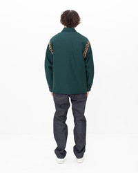 COACH JKT COLOR: BLACK, GREEN, MUSTARD SIZE: 1, 2, 3, 4, 5 A Down Jacket made from a densely woven Wool/Silk army twill fabric Custom printed silk mole fabric patch details Fine Wool Pile Lining Pressed Finish Custom Snap Buttons Front "Visvim In an intuitive manner" embroidery details 62% WOOL 38% SILK UNIT:cm Please be aware that there may be slight variations in the color of the fabric and pattern than shown in the images. There will be slight shrinkage when washing for the first time. SIZE LENGTH CHEST SHOULDER SLEEVE 1 72 120 56.7 57.7 2 74.5 124 58.2 59.2 3 77 128 59.7 60.7 4 79.5 133 61.7 62.2 5 82 138 63.7 63.7