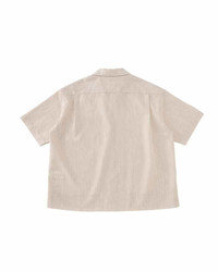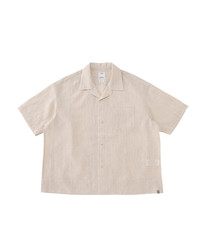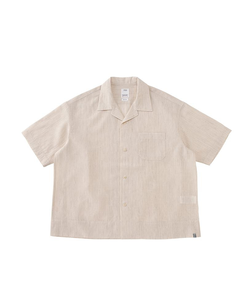 COPA SHIRT S/S SANTOME COLOR: NAVY, IVORY SIZE: 1, 2, 3, 4, 5 Open Collard Short Sleeve Shirt with stripes made from a woven fabric blended with multiple types of thread Pressed Finish Custom water buffalo buttons Please Note : 67% WOOL 33% LINEN SIZE 1 : LENGTH 65.5 , CHEST 126.5 , SHOULDER 52.5 , SLEEVE 23.4 (cm) SIZE 2 : LENGTH 68 , CHEST 130.5 , SHOULDER 54 , SLEEVE 24.1 (cm) SIZE 3 : LENGTH 70.5 , CHEST 134.5 , SHOULDER 55.5 , SLEEVE 24.8 (cm) SIZE 4 : LENGTH 73 , CHEST 139.5 , SHOULDER 57.5 , SLEEVE 25.5 (cm) SIZE 5 : LENGTH 75.5 , CHEST 144.5 , SHOULDER 59.5 , SLEEVE 26.2 (cm) Please be aware that there may also be slight variations in the color of the fabric and pattern than shown in the images. There will be slight shrinkage when washing for the first time.