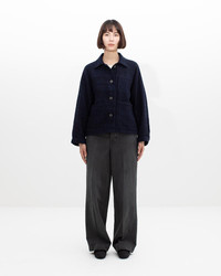 COVERALL (TUSSAR SILK) W COLOR: BLACK, NAVY SIZE: 00, 0, 1, 2, 3 Custom Tussar Silk Tweed Jacket Pressed Finish Custom Water Buffalo Buttons 100% Silk UNIT:cm : Please be aware that there may be slight variations in the color of the fabric and pattern than shown in the images. There will be slight shrinkage when washing for the first time. SIZE LENGTH CHEST SLEEVE 00 61 103.5 74 0 63 103.5 77 1 64.5 107.5 79 2 66 112.5 81.2 3 67.5 117.5 83.4