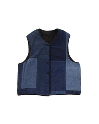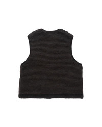 CROCHET KNIT VEST (N.D.) COLOR: BLACK, BROWN, LT.GREEN SIZE: 1, 2, 3, 4, 5 A Hand-Knit Vest made from a custom Natural Dyed Wool yarn Kofu Lining details Pressed Finish Custom Water Buffalo Buttons Reversible Style 100% WOOL UNIT:cm : Measurements on the spec sheet indicates the measurements when worn. Items that are finished with Natural Dye will experience different textural finishes where no two are alike. Also, there may be pieces that have mud left on the finished garment as a result of the treatment. Please be aware that there may also be slight variations in the color of the fabric and pattern than shown in the images. There will be slight shrinkage when washing for the first time. Please be aware that there may be slight variations in the color of the fabric and pattern than shown in the images. There will be slight shrinkage when washing for the first time. PLease also be aware that there may be variations to Kofu, Blanket, and/or African Indigo vintage fabric used in the products and/or the tag. Please also note that those vintage fabric may be more delicate than the ones on the other products. SIZE LENGTH CHEST SHOULDER 1 60 108 40.5 2 62 112 42 3 64 116 43.5 4 66.5 121 45.5 5 69 126 47.5