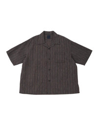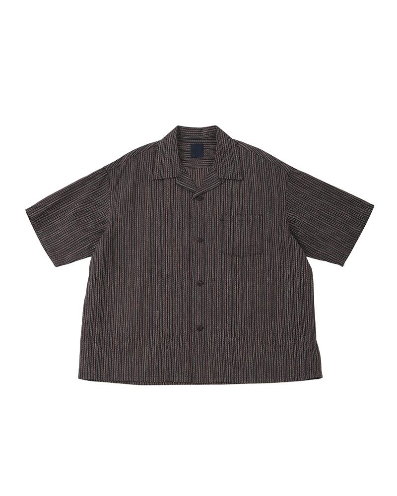 CROSBY SHIRT S/S SANTOME COLOR: BLACK, NAVY SIZE: 1, 2, 3, 4, 5 A Shirt woven with a multiple thread blend One Wash Custom Water Buffalo Buttons 58% WOOL 42% LINEN (BLACK) % 62% WOOL 38% LINEN (NAVY) UNIT:cm : Please be aware that there is a possibility for slight variations in the color appearance and pattern on the fabric that is utilized for this product; each finished garment may be different from the displayed product image. There may also be some shrinkage following the first wash of this product. The Kofu, Bandana, Blanket, African Indigo textile and vintage fabrics used for the name tag and actual product itself vary in color and pattern where no two pieces are alike. Additionally, the degree of deterioration will vary with each fabric depending on its age and historical use so these products should be considered more fragile in comparison to our regularly manufactured products. SIZE LENGTH CHEST SHOULDER SLEEVE 1 65.3 120.2 52.2 23.4 2 67.8 124.2 53.7 24.1 3 70.3 128.2 55.2 24.8 4 72.8 133.2 57.2 25.5 5 75.3 138.2 59.2 26.2
