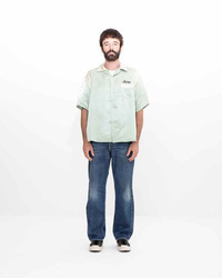 DOUGLAS SHIRT S/S COLOR: BLACK, BLUE, PURPLE, PL.GREEN SIZE: 1, 2, 3, 4, 5 A Rayon Satin Shirt using filament yarn Damaged Finish Natural Dye Finish Custom bone buttons Front "PEERLESS" embroidery details Back "VISVIM WMV dragon" embroidery details 100% RAYON UNIT:cm : Please be aware that there may be slight variations in the color of the fabric and pattern than shown in the images. There will be slight shrinkage when washing for the first time. SIZE LENGTH CHEST SHOULDER SLEEVE 1 65.3 126.7 52.2 23.4 2 67.8 130.7 53.7 24.1 3 70.3 134.7 55.2 24.8 4 72.8 139.7 57.2 25.5 5 75.3 144.7 59.2 26.2