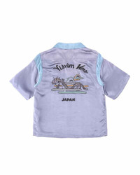 DOUGLAS SHIRT S/S COLOR: BLACK, BLUE, PURPLE, PL.GREEN SIZE: 1, 2, 3, 4, 5 A Rayon Satin Shirt using filament yarn Damaged Finish Natural Dye Finish Custom bone buttons Front "PEERLESS" embroidery details Back "VISVIM WMV dragon" embroidery details 100% RAYON UNIT:cm Please be aware that there may be slight variations in the color of the fabric and pattern than shown in the images. There will be slight shrinkage when washing for the first time. SIZE LENGTH CHEST SHOULDER SLEEVE 1 65.3 126.7 52.2 23.4 2 67.8 130.7 53.7 24.1 3 70.3 134.7 55.2 24.8 4 72.8 139.7 57.2 25.5 5 75.3 144.7 59.2 26.2