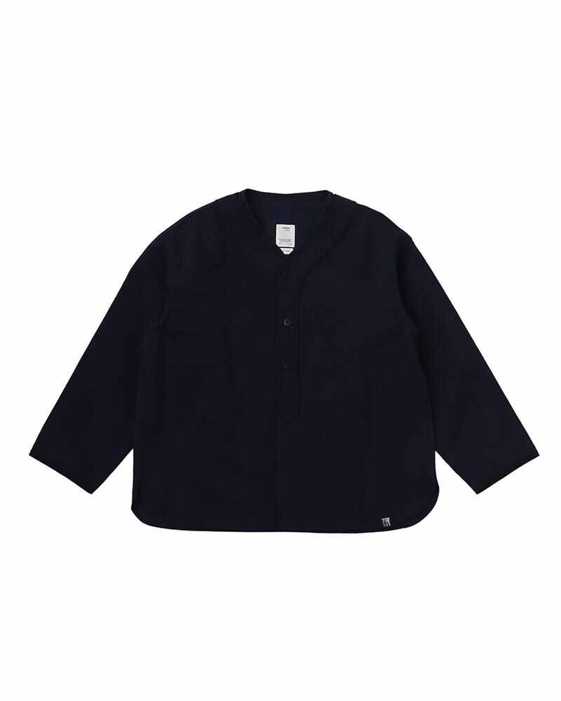 DUGOUT SHIRT L/S (W/L PIQUE) COLOR: BLACK, NAVY, IVORY SIZE: 1, 2, 3, 4, 5 Baseball shirt made from wool-linen blend fabric One wash Original water buffalo horn buttons 74% Wool , 26% Linen SIZE 1 : Length 25.9 , Shoulder 20.7 , Sleeve 19.2 , Chest 46 (inch) SIZE 2 : Length 26.7 , Shoulder 21.2 , Sleeve 19.8 , Chest 48.4 (inch) SIZE 3 : Length 27.5 , Shoulder 21.8 , Sleeve 20.3 , Chest 50 (inch) SIZE 4 : Length 28.3 , Shoulder 22.6 , Sleeve 20.9 , Chest 51.9 (inch) SIZE 5 : Length 29.1 , Shoulder 23.4 , Sleeve 21.5 , Chest 53.9 (inch) Please be aware that the fabric used may vary in color and pattern from item to item. Products may shrink slightly when washed.