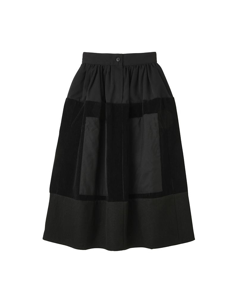 ELEVATION SKIRT P.W. WOOL CORDS W COLOR: BLACK, LT.BROWN SIZE: 00, 0, 1, 2, 3 Custom Patchwork Wool Cotton Corduroy, Twill, and Gabardine Blend Skirt Pressed Finish Custom Water Buffalo Buttons 100% Wool (Pile) 100% Cotton (Base Cloth) UNIT:cm : Please be aware that there may be slight variations in the color of the fabric and pattern than shown in the images. There will be slight shrinkage when washing for the first time. SIZE LENGTH WAIST 00 77.5 68 0 82.5 68 1 84 72 2 85.5 76 3 87 80