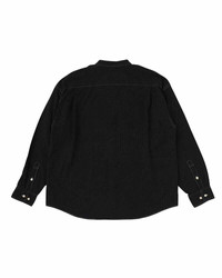 ELGIN SHIRT L/S (N.D.) COLOR: DK.INDIGO, INDIGO, MUD SIZE: 1, 2, 3, 4, 5 A shirt with a custom patterned discharge print made with a natural dyed blended cotton, silk fabric Natural Dye finish treatment Natural Indigo Dyeing (DK.INDIGO, INDIGO) Mud Dyeing (MUD) One Wash Custom bone buttons 92% COTTON 8% SILK UNIT:cm : Items that are finished with Natural Dye will experience different textural finishes where no two are alike. Also, there may be pieces that have mud left on the finished garment as a result of the treatment. Please be aware that there may also be slight variations in the color of the fabric and pattern than shown in the images. There will be slight shrinkage when washing for the first time.The vintage fabrics that are used on the tags as well as the garments themselves include Kofu (Vintage Japanese textile), Bandana, Blanket, and African Indigo textile, where no two pieces are alike and each piece will exhibit variations in hue and graphic patterns. Also, the degree of deterioration in the fabrics due to aging is different for each piece; this affects the durability against rips and tears compared to normal products that have not undergone any aging. SIZE LENGTH CHEST SHOULDER SLEEVE 1 71.8 123 57.4 56.1 2 74.3 127 58.9 57.6 3 76.8 131 60.4 59.1 4 79.3 136 62.4 60.6 5 81.8 141 64.4 62.1