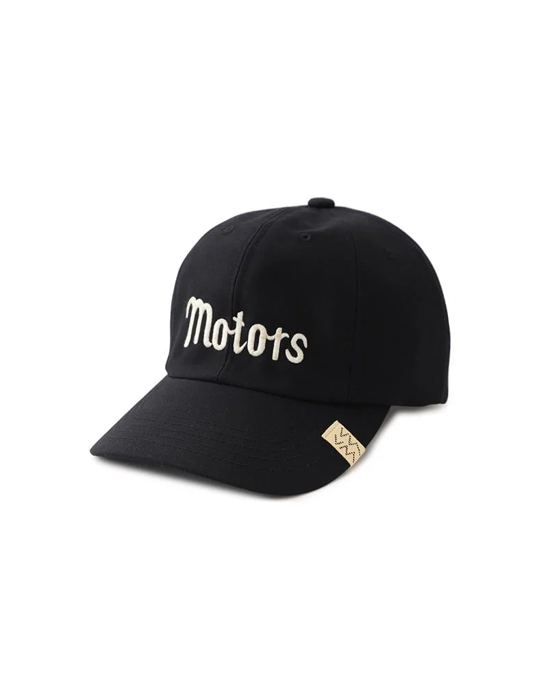 EXCELSIOR II CAP COLOR: BLACK, NAVY, GREY SIZE: ONE SIZE Baseball cap made from a densely woven chino cloth Custom brass buckle with a special antique finish treatment Vegetable Tanned Cowhide adjustable strap "motors" embroidery detail 100% COTTON CIRCUMFERENCE:57 - 61 (cm) : Please be aware that there may be slight variations in color or pattern from the images shown due to the nature of the fabric being used. Additionally the style will experience some shrinkage when washed.