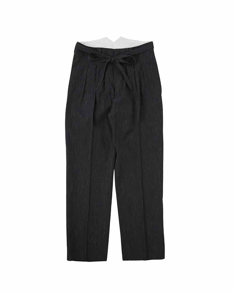 HAKAMA PANTS COLOR: NAVY, CHARCOAL SIZE: 1, 2, 3, 4, 5 Hakama Pants woven with a multiple thread blend Pressed Finish Custom Water Buffalo Buttons 66% WOOL 19% LINEN 15% SILK (CHARCOAL) 63% WOOL 32% LINEN 5% COTTON (NAVY) UNIT:cm Please be aware that the vintage fabric, bandanas, blanket, and african indigo fabric used may vary in color and pattern from item to item. With time, these fabrics may also become weaker and less tear-resistant. Also, due to the use of natural dyes, the outward appearance of items may vary slightly from one another. For certain items, mud may be applied for an added effect. Products may shrink slightly when washed. SIZE LENGTH INSEAM WAIST THIGH WIDTH HEM 1 107.5 73 82.5 37.9 21.4 2 110 75 87.5 39.1 22.6 3 112.5 77 92.5 40.3 23.8 4 115 79 97.5 41.5 25 5 117.5 81 102.5 42.7 26.2