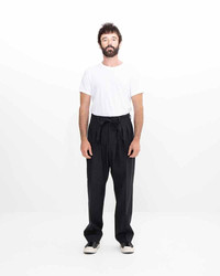 HAKAMA PANTS SANTOME COLOR: NAVY, CHARCOAL SIZE: 1, 2, 3, 4, 5 Hakama Pants woven with a multiple thread blend Pressed Finish Custom Water Buffalo Buttons 65% WOOL 35% LINEN (CHARCOAL) 61% WOOL 34% LINEN 4% SILK 1% COTTON (NAVY) UNIT:cm Please be aware that there may be slight variations in the color of the fabric and pattern than shown in the images. There will be slight shrinkage when washing for the first time. SIZE LENGTH INSEAM WAIST THIGH WIDTH HEM 1 107.5 73 82.5 37.9 21.4 2 110 75 87.5 39.1 22.6 3 112.5 77 92.5 40.3 23.8 4 115 79 97.5 41.5 25 5 117.5 81 102.5 42.7 26.2