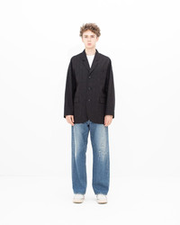 HAMMONS JKT SANTOME COLOR: BLACK, NAVY SIZE: 1, 2, 3, 4, 5 Custom Wool Linen Blend Tailored Jacket Pressed Finish Custom Water Buffalo Buttons 68% Wool 32% Linen (BLACK) | 70% Wool 30% Linen (NAVY) UNIT:cm : Please be aware that there may be slight variations in the color of the fabric and pattern than shown in the images. There will be slight shrinkage when washing for the first time. SIZE LENGTH CHEST SHOULDER SLEEVE 1 76 116.6 69.5 47 2 78.5 120.6 71 48.5 3 81 124.6 72.5 50 4 83.5 129.6 74.5 51.5 5 86 134.6 76.5 53