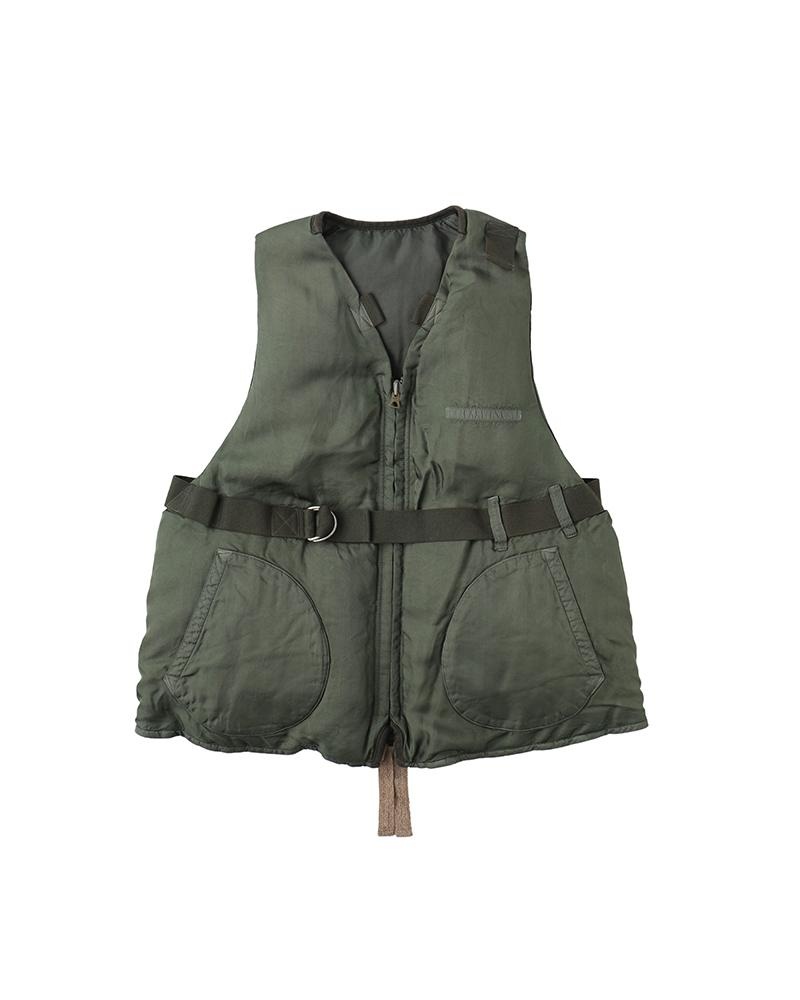 HARRIER DOWN VEST COLOR: NAVY, OLIVE, KHAKI SIZE: 1, 2, 3, 4, 5 Down vest made from specially processed rayon fabric White goose down filling Garment dyed Damaged finish Vintage CROWN zippers Original military tape Reversible 100% Rayon SIZE 1 : Length 66 , Shoulder 33.8 , Chest 115 (cm) SIZE 2 : Length 67.5 , Shoulder 35.3 , Chest 119 (cm) SIZE 3 : Length 69 , Shoulder 36.8 , Chest 123 (cm) SIZE 4 : Length 71 , Shoulder 38.8 , Chest 128 (cm) SIZE 5 : Length 73 , Shoulder 40.8 , Chest 133 (cm) Due to the use of natural dyes, the outward appearance of items may vary slightly from one another. For certain items, mud may be applied for an added effect. The fabric used may vary in color and pattern from item to item. Products may shrink slightly when washed.