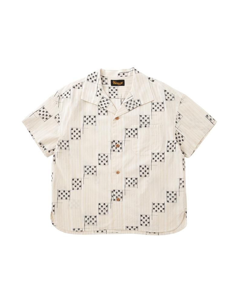 JULIE O.C. SHIRT S/S KASURI W COLOR: BLACK, WHITE SIZE: 0, 1, 2, 3 A Blouse made with a Cotton Linen Kasuri Material One Wash Custom Bamboo Buttons 85% Cotton 15% Linen UNIT:cm : Please be aware that there may be slight variations in color or pattern from the images shown due to the nature of the fabric being used. Additionally the style will experience some shrinkage when washed. SIZE LENGTH CHEST SHOULDER SLEEVE 0 63.8 112.6 55.5 16.5 1 65.3 116.1 57 17 2 66.8 119.6 58.5 17.5 3 68.3 123.1 60 18
