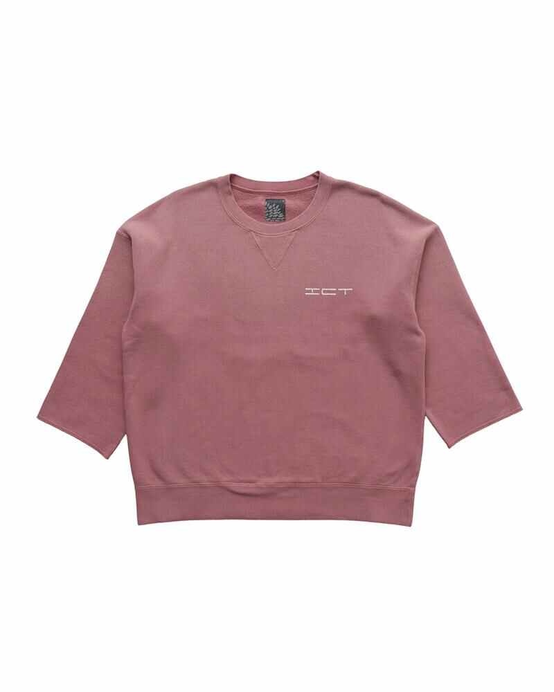 JUMBO SB SWEAT 3/4 DMGD COLOR: BLUE, PURPLE SIZE: 1, 2, 3, 4, 5 Cotton Crewneck 3/4 Sleeve Sweatshirt Jumbo Silhouette Garment Dyed Damaged Finish "ICT" print detail 100% COTTON UNIT:cm Items that are finished with Natural Dye will experience different textural finishes where no two are alike. Also, there may be pieces that have mud left on the finished garment as a result of the treatment. Please be aware that there may also be slight variations in the color of the fabric and pattern than shown in the images. There will be slight shrinkage when washing for the first time. SIZE LENGTH CHEST SHOULDER SLEEVE 1 62 110 61 35 2 64 115 63 36 3 66 120 65 37 4 68.5 125 67 38 5 71 130 69 39